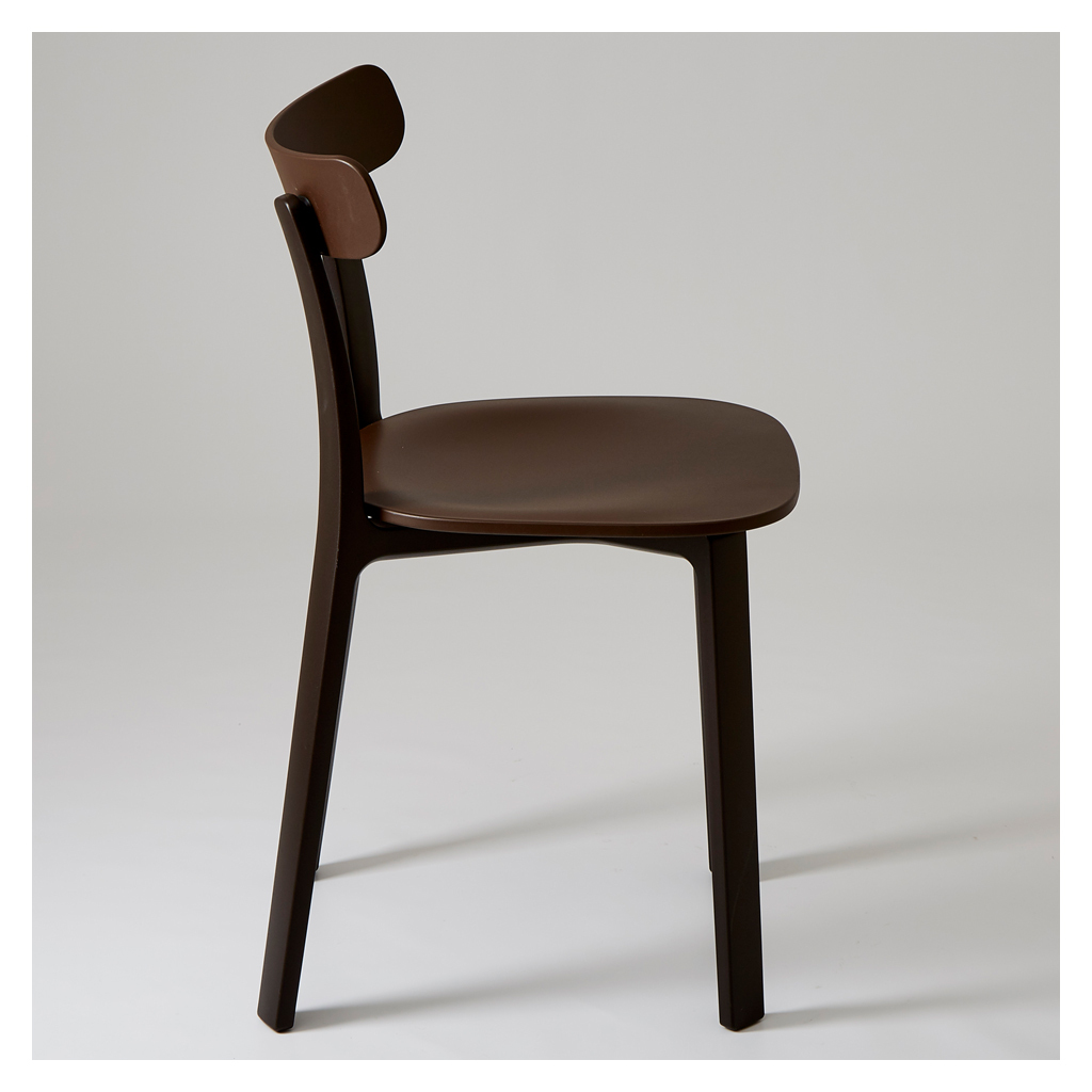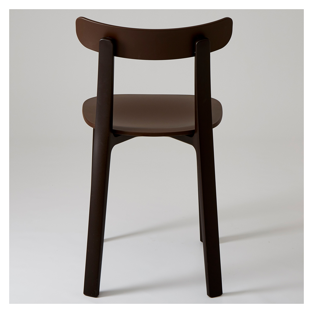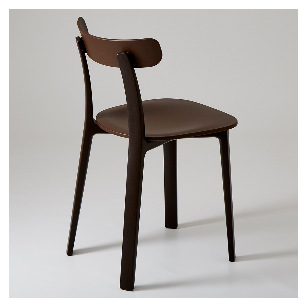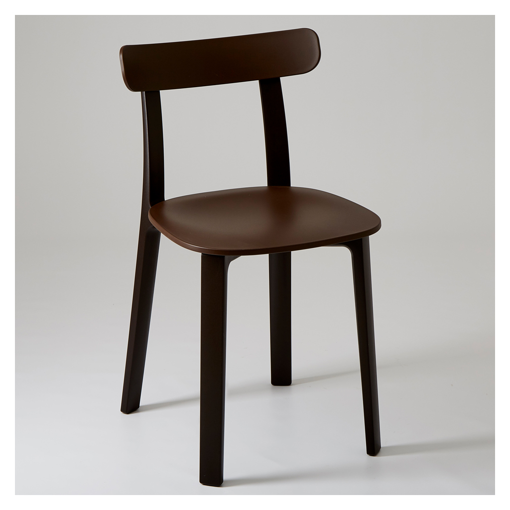 The APC, or All Plastic Chair by Jasper Morrison translates classic wooden seating forms, seen in European design for decades, into a 21st century plastic manifestation. Designed to suit a new generation, the APC swaps wood for plastic, marking a significant advancement in the functionality of chairs of this type. APC is composed of one piece of high performance polypropylene that constitutes the frame, while the thin seat surface is organically shaped, ensuring the chair is moulded to comfortably support all users. The All Plastic Chair's backrest is also more finely modelled than more conventional chairs, connected to the frame by twin shafts cushioned with rubber buffers, contoured to support the back and flex gently in response to the sitter's movements. The highly durable plastic used to create the All Plastic Chair is resistant to sunlight and water, making the chair versatile and suitable for both indoor and outdoor settings. Using two types of plastic, the chairs' frames are in darker hues, while the seats and backrests are a subtly different nuance of the same colour, lending the design a distinctive, contemporary aesthetic. This contemporary, graphite-hued All Plastic Chair by Jasper Morrison is a contemporary triumph in polypropylene engineering and would enhance any style of space with its fine lines and clean aesthetic.