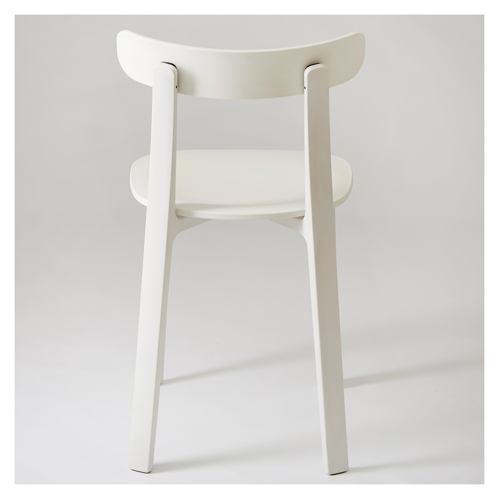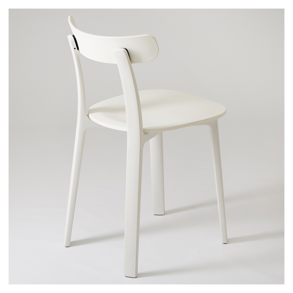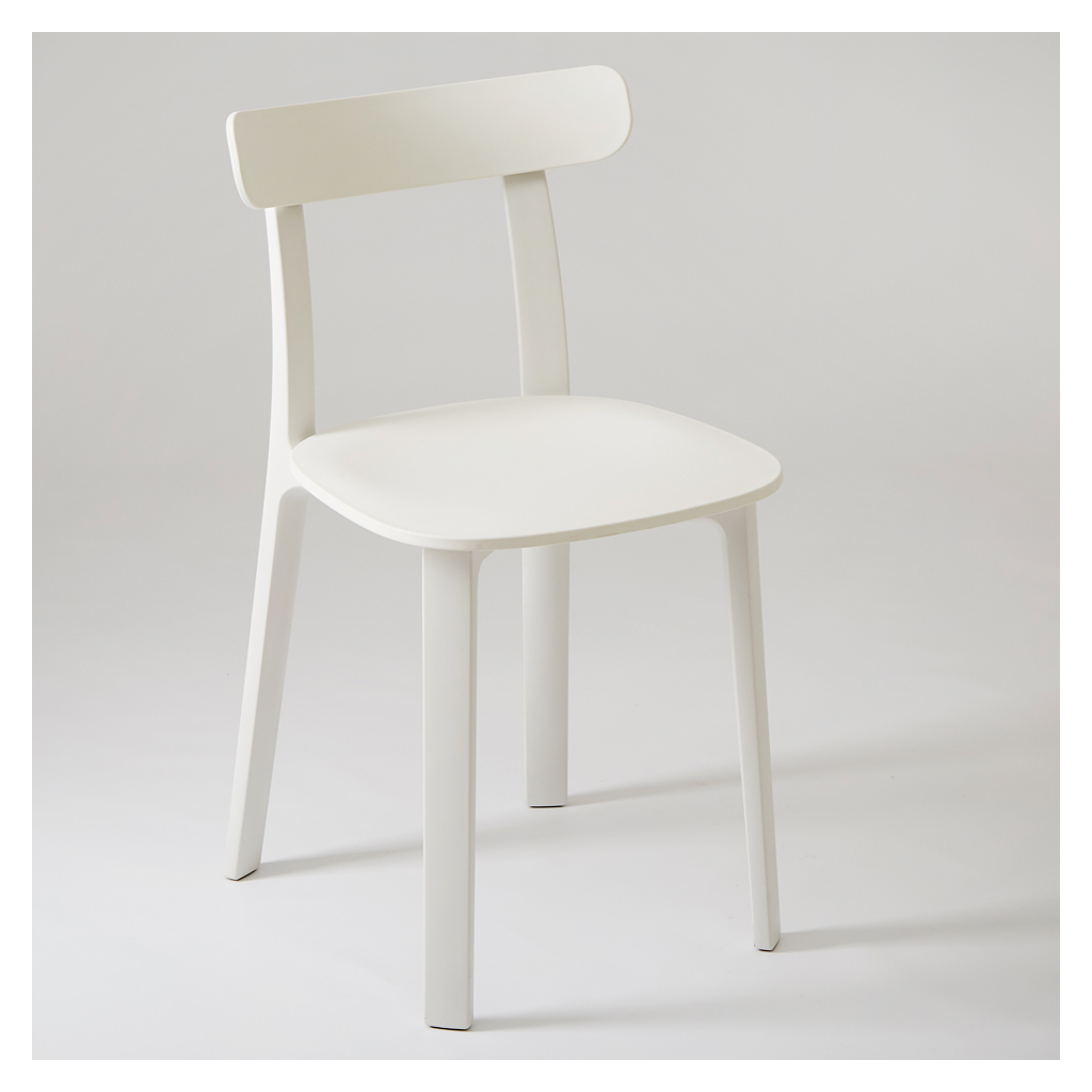 The APC, or All Plastic Chair by Jasper Morrison translates classic wooden seating forms, seen in European design for decades, into a 21st century plastic manifestation. Designed to suit a new generation, the APC swaps wood for plastic, marking a significant advancement in the functionality of chairs of this type. APC is composed of one piece of high performance polypropylene that constitutes the frame, while the thin seat surface is organically shaped, ensuring the chair is moulded to comfortably support all users. The All Plastic Chair's backrest is also more finely modelled than more conventional chairs, connected to the frame by twin shafts cushioned with rubber buffers, contoured to support the back and flex gently in response to the sitter's movements. The highly durable plastic used to create the All Plastic Chair is resistant to sunlight and water, making the chair versatile and suitable for both indoor and outdoor settings. Using two types of plastic, the chairs' frames are in darker hues, while the seats and backrests are a subtly different nuance of the same colour, lending the design a distinctive, contemporary aesthetic. This contemporary, crisp white All Plastic Chair by Jasper Morrison is a contemporary triumph in polypropylene engineering and would enhance any style of space with its fine lines and clean aesthetic. Complete the look with a corresponding Seat Dot Cushion Pad, designed by Hella Jongerius for Vitra.