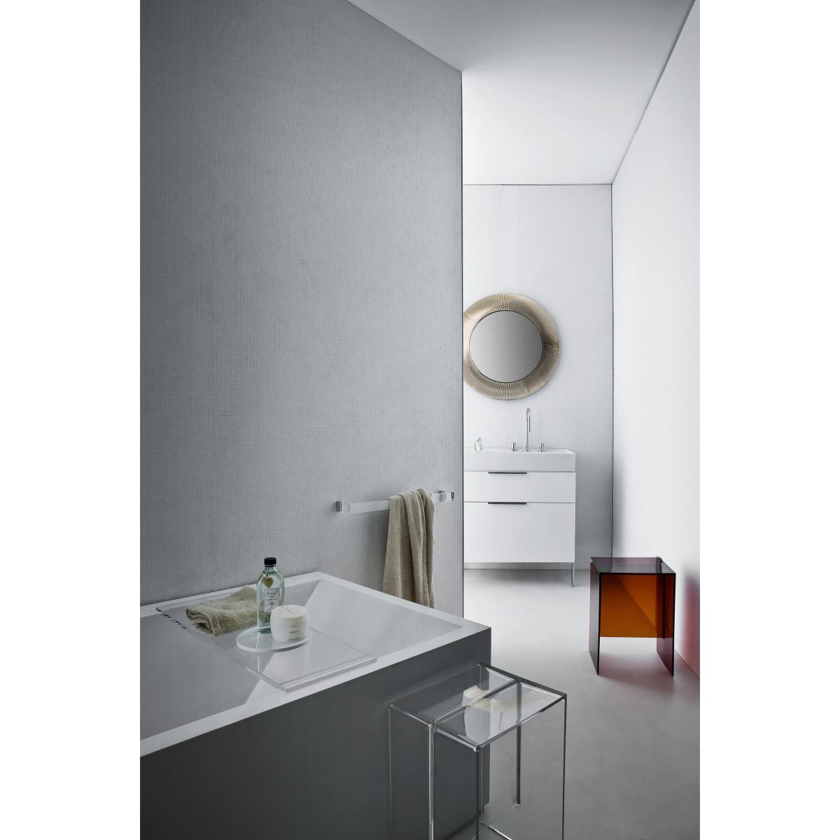 Kartell and LAUFEN are together launching an integrated and complete bathroom project. A codesigned project nurtured by the intense dialogue between the enlightened customer on the one hand the awardwinning designers Ludovica+Roberto Palomba on the other, who have earned themselves the merit of having reinvented the concept of the bathroom. The vitreous transparency of latest generation polycarbonate and the sheer edges of the totemic freestanding washbasins attract those that love minimal, lunar, rarefied white environments.