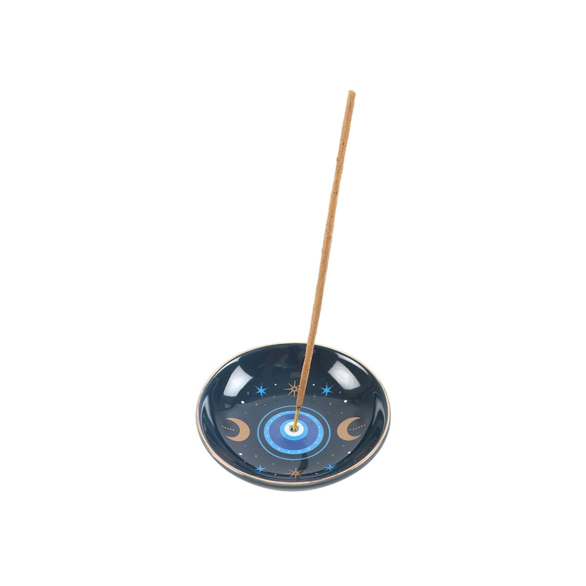 Add a mystical accent to any space with this dark blue incense holder featuring an all seeing eye print surrounded by crescent moons and stars. Perfect for catching ash from incense sticks or doubling as a trinket dish for jewellery and other small treasures.
