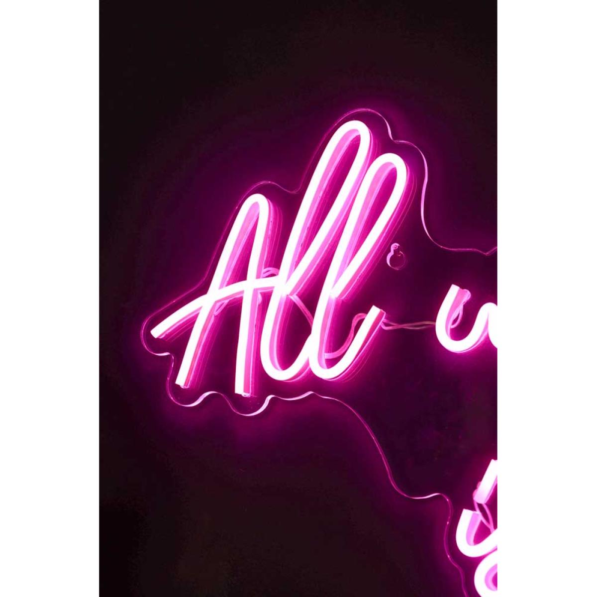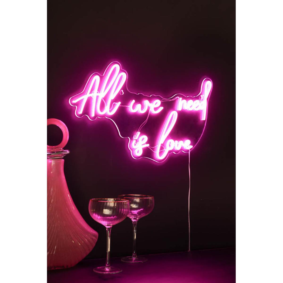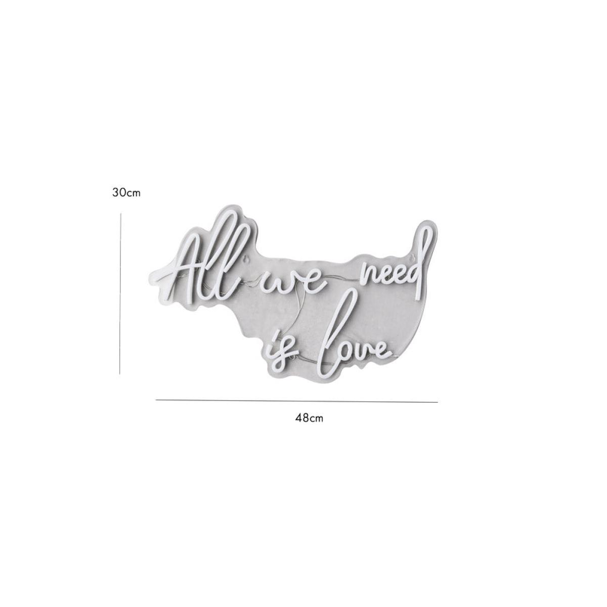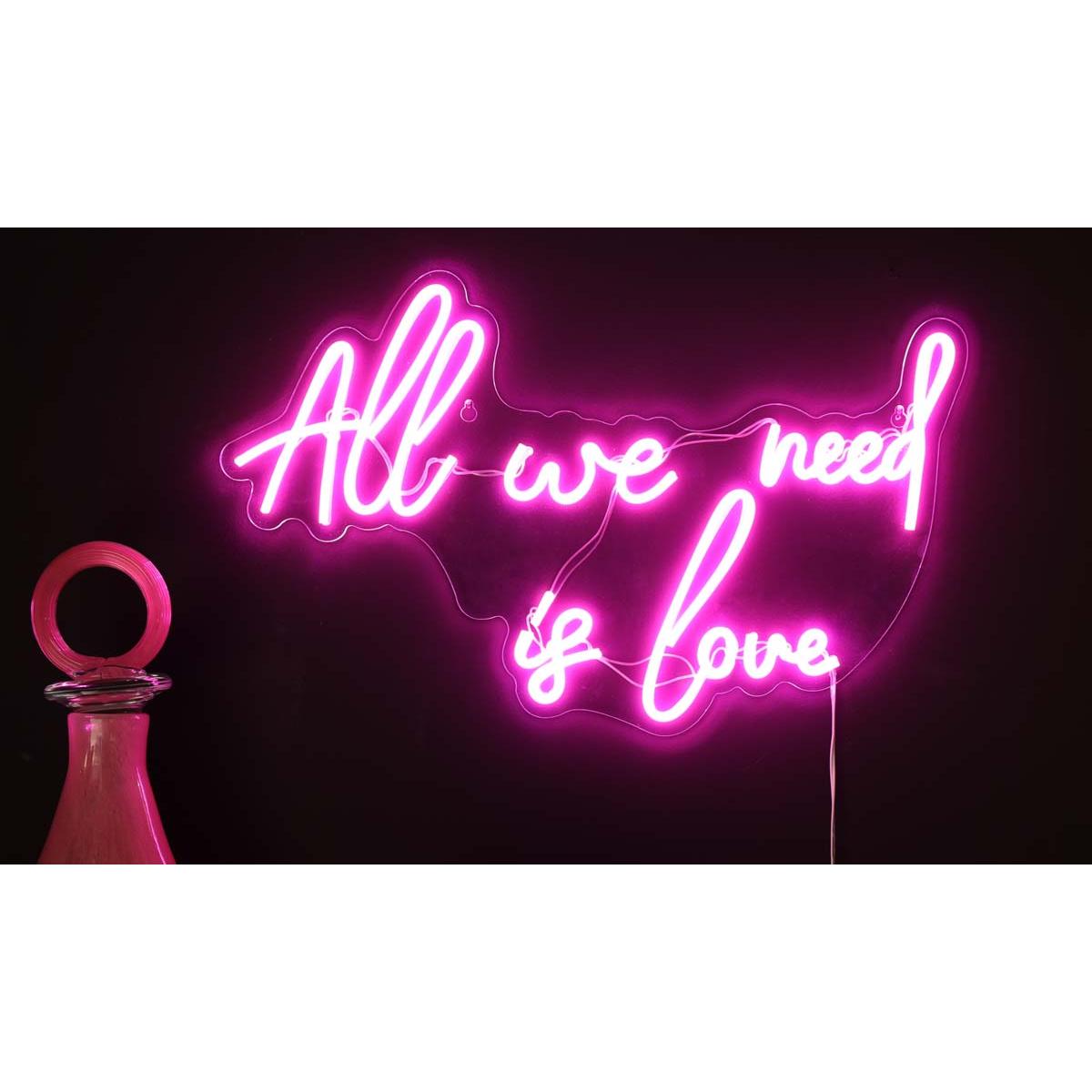 About The All We Need Is Love LED Acrylic Neon Light Celebrate the power of love with the unique and wonderful, All We Need Is Love LED Acrylic Neon Light. Designed with an acrylic base, the neon sign reveals the words ‘All We Need Is Love’ in neon pink, scripted font. Measuring H30cm x W48cm, the neon wall light is the ideal size to style on the walls of your home. Please note that a 1.75m USB cable is included with this design but a USB-compatible plug will need to be sourced separately. Why We Think You’ll Love The Pink Love Neon Light Neon lights promise to transform your interior with colour and personality after dark. As a result, we are always looking for fabulous, affordable designs to add to our collection and fell head over heels in love with the All We Need Is Love Neon Light. Introducing a powerful phrase to live by, the neon sign brings the language of love to your walls and celebrates an irresistible hot pink colour palette. How To Style The All We Need Is Love Neon Sign The All We Need Is Love LED Acrylic Neon Light is designed with pre-cut holes for wall hanging and looks amazing anywhere from the kitchen to your hallway or bedroom. Style yours solo above the bed, introduce the neon sign to the walls of your hallway or display the light in your living room to add a pop of neon pink colour to your gallery wall!
