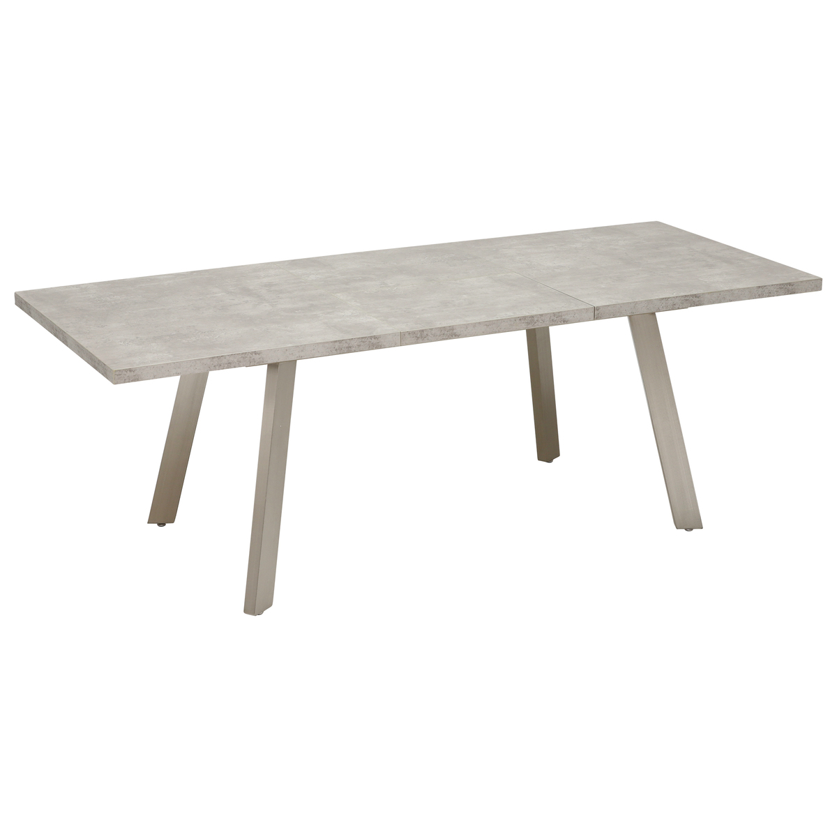 The Allegra Extending Dining Table is made from fiberboard with a stone grey finish, aluminium detail and brushed stainless steel legs. It is the perfect addition to a modern, industrial styled home. The dining table also extends to a length of 220cm, meaning there is plenty of room for family and friends.