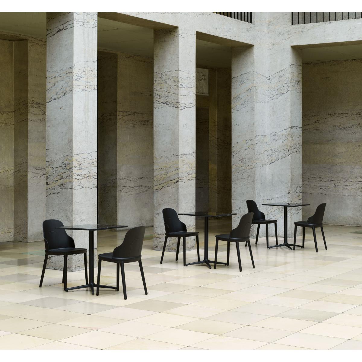 The Parisian bistro spirit inspired the "Allez" collection of tables & chairs created by Danish designer Simon Legald. Evoking traditional café tables, "Allez" tables combine a central base in black cast iron with a square or round top, available in different materials: marble, wood or brushed steel. The marble and steel versions are suitable for outdoor use, while the oak veneer version is for indoor use only. The central four-spoke base ensures perfect stability. Allez tables display clean, elegant lines from all angles.