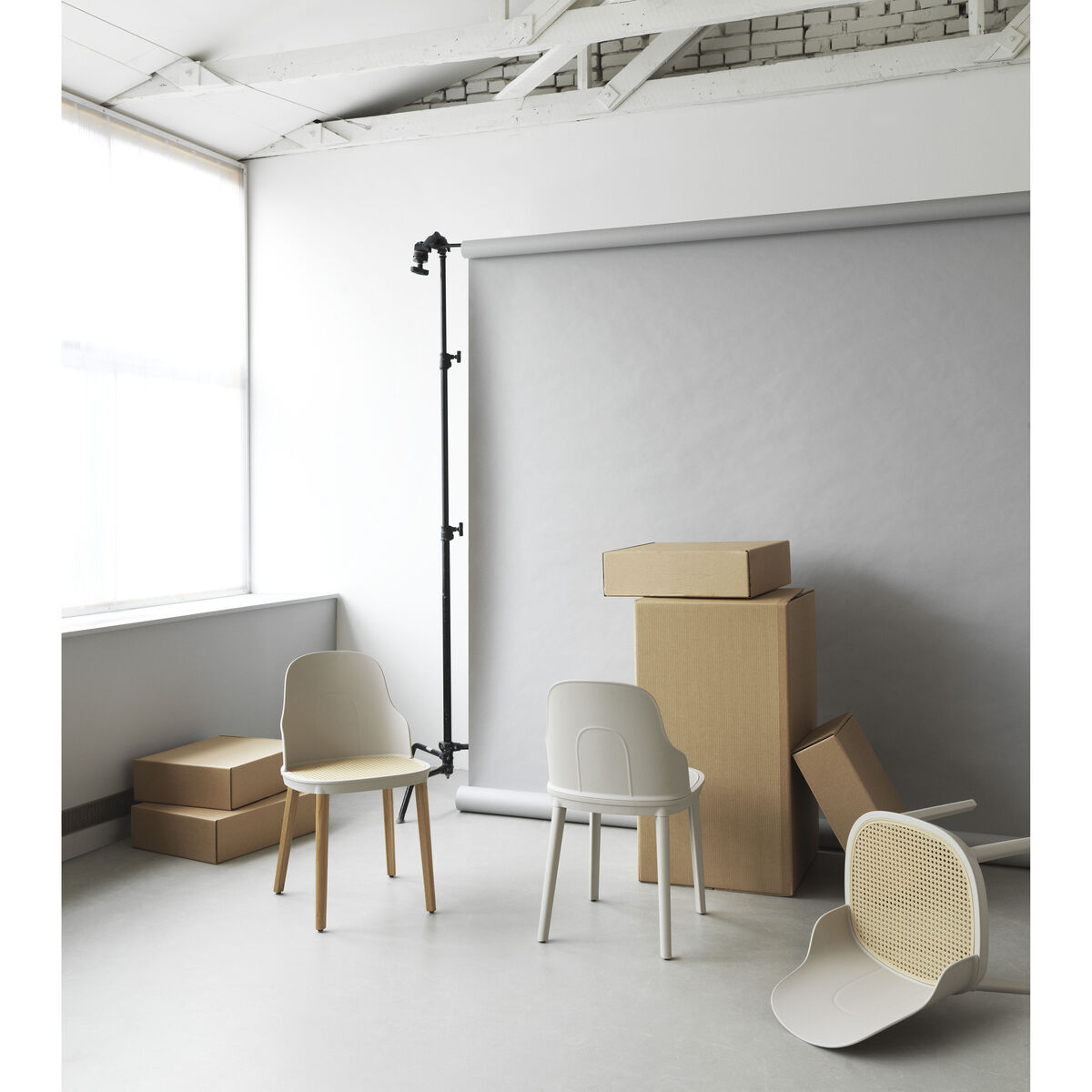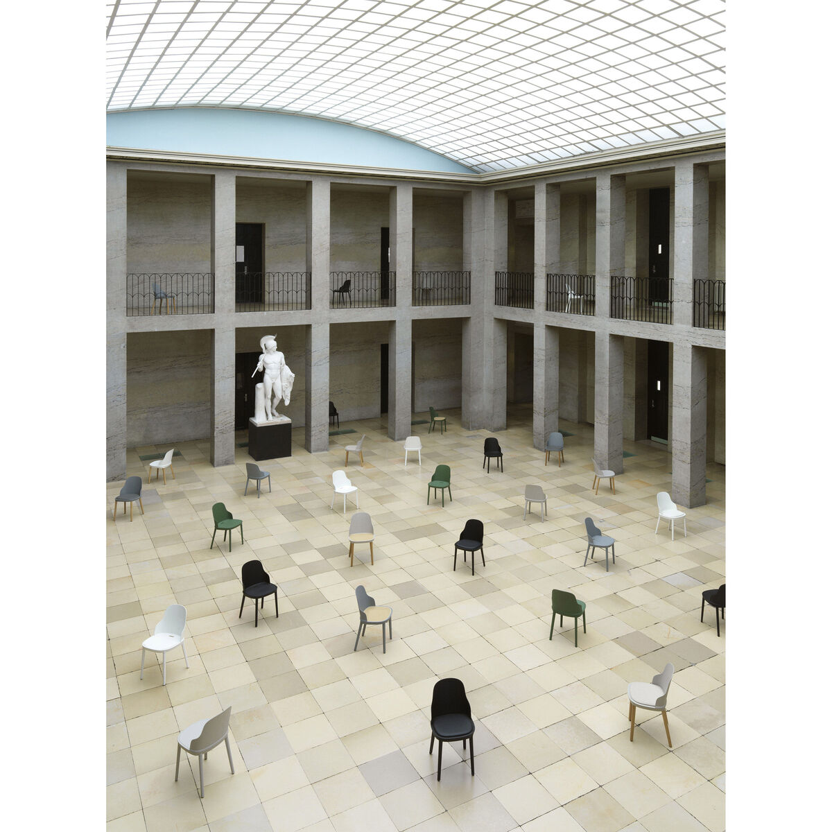 The new-generation bistro chair. The Parisian bistro spirit inspired the "Allez" collection of tables & chairs created by Danish designer Simon Legald. The Allez chair revisits the traditional café chair with a modern twist. Delivered flat, this chair is made up of different parts that can be easily assembled and disassembled for easy transport and recycling. All parts are replaceable. The polypropylene structure can be combined with a wide variety of seats: in polyamide, in polypropylene moulded like rattan cane, or with a padded seat covered with fabric or leather. The legs are available in polypropylene or natural oak. Lightweight, this chair weighs just 3. 6 kg. The curved, undulating contours of the backrest add character to the silhouette. Versatile and flexible, the Allez chair adapts to a wide variety of contexts, in private or public environments, indoors or out. With its modern design and incredible ability to assume a wide range of expressions, Allez will be part of any intimate space for meaningful new moments.
