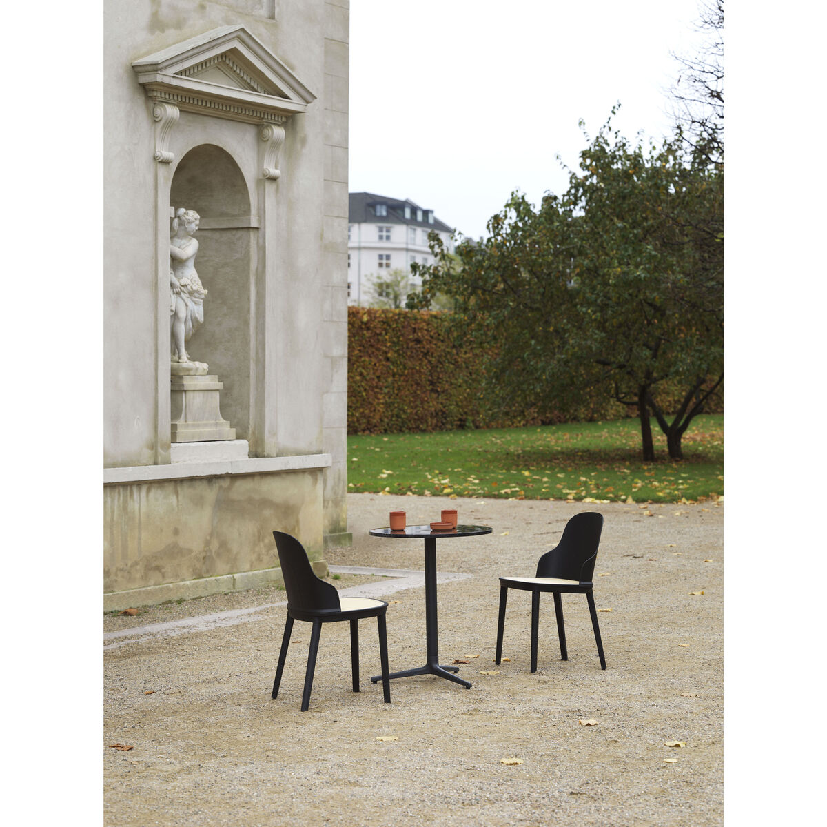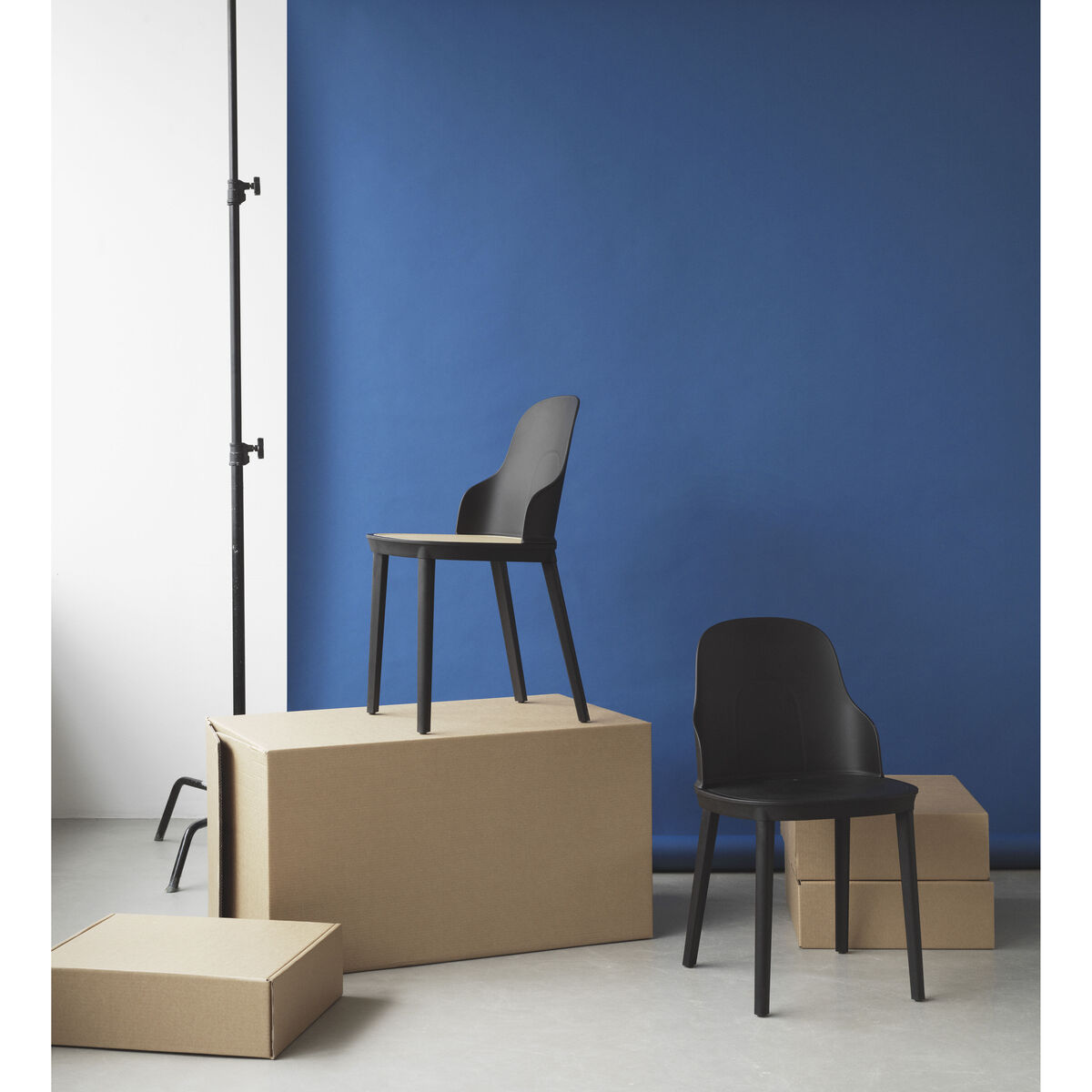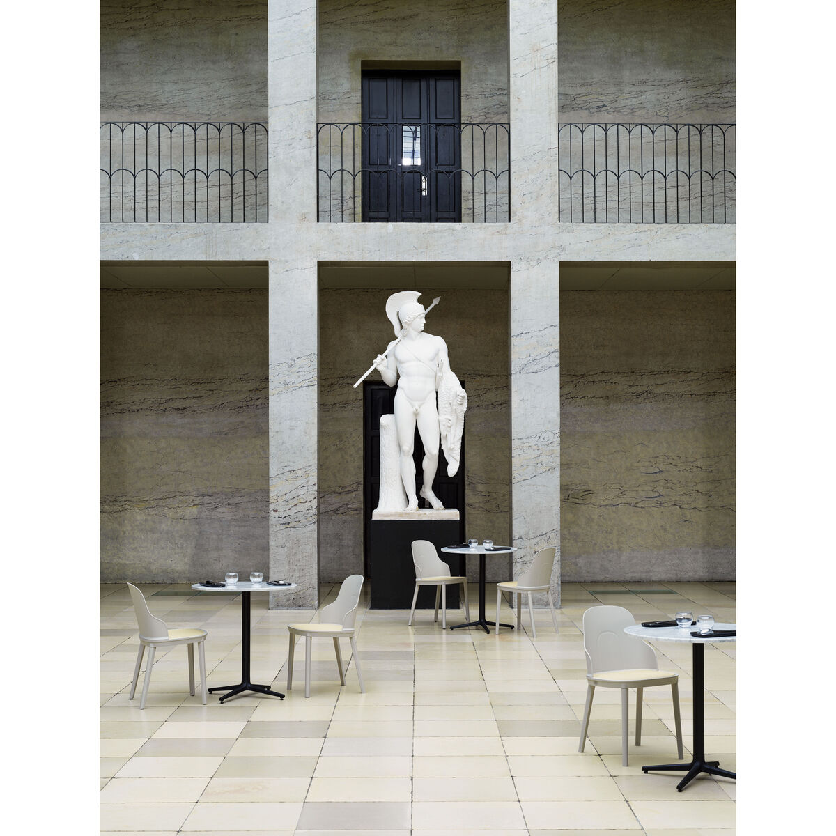 The new-generation bistro chair. The Parisian bistro spirit inspired the "Allez" collection of tables & chairs created by Danish designer Simon Legald. The Allez chair revisits the traditional café chair with a modern twist. Delivered flat, this chair is made up of different parts that can be easily assembled and disassembled for easy transport and recycling. All parts are replaceable. The polypropylene structure can be combined with a wide variety of seats: in polyamide, in polypropylene moulded like rattan cane, or with a padded seat covered with fabric or leather. The legs are available in polypropylene or natural oak. Lightweight, this chair weighs just 3. 6 kg. The curved, undulating contours of the backrest add character to the silhouette. Versatile and flexible, the Allez chair adapts to a wide variety of contexts, in private or public environments, indoors or out. With its modern design and incredible ability to assume a wide range of expressions, Allez will be part of any intimate space for meaningful new moments.