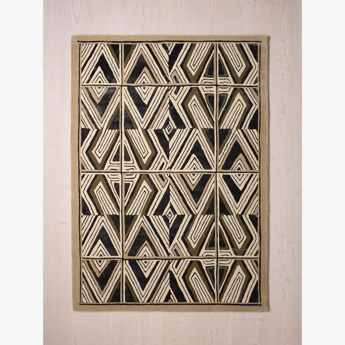 Our in-house design team uses a mix of geometric lines to form our Allier rug. Hand-tufted in India from a New Zealand wool blend, this material finish lends supreme softness and comfort underfoot. The bold design takes inspiration from the patterns found in Kuba cloths, a traditional African textile, as well as patterns seen in 180 House. Earthy colours of olive, taupe and cream will sit easily alongside any of our made-to-order velvets and linens, or on a dark timber floor to create a statement. Geometric rug Designed in-house Hand-tufted in India New Zealand wool blend Pattern influenced by Kuba cloths Inspired by 180 House