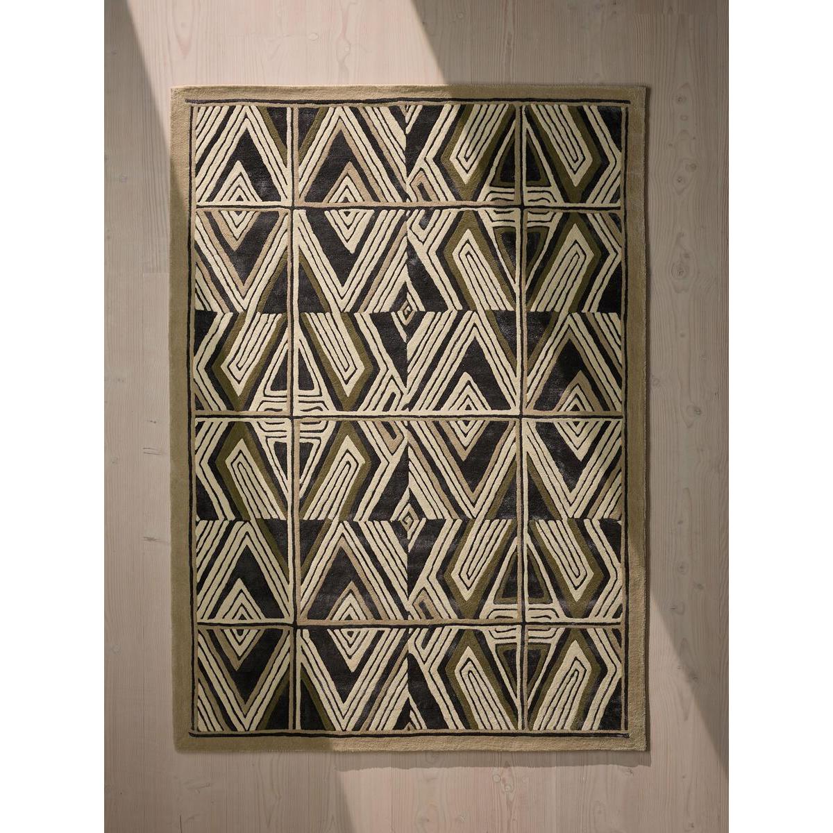 Our in-house design team uses a mix of geometric lines to form our Allier rug. Hand-tufted in India from a New Zealand wool blend, this material finish lends supreme softness and comfort underfoot. The bold design takes inspiration from the patterns found in Kuba cloths, a traditional African textile, as well as patterns seen in 180 House. Earthy colours of olive, taupe and cream will sit easily alongside any of our made-to-order velvets and linens, or on a dark timber floor to create a statement. Geometric rug Designed in-house Hand-tufted in India New Zealand wool blend Pattern influenced by Kuba cloths Inspired by 180 House