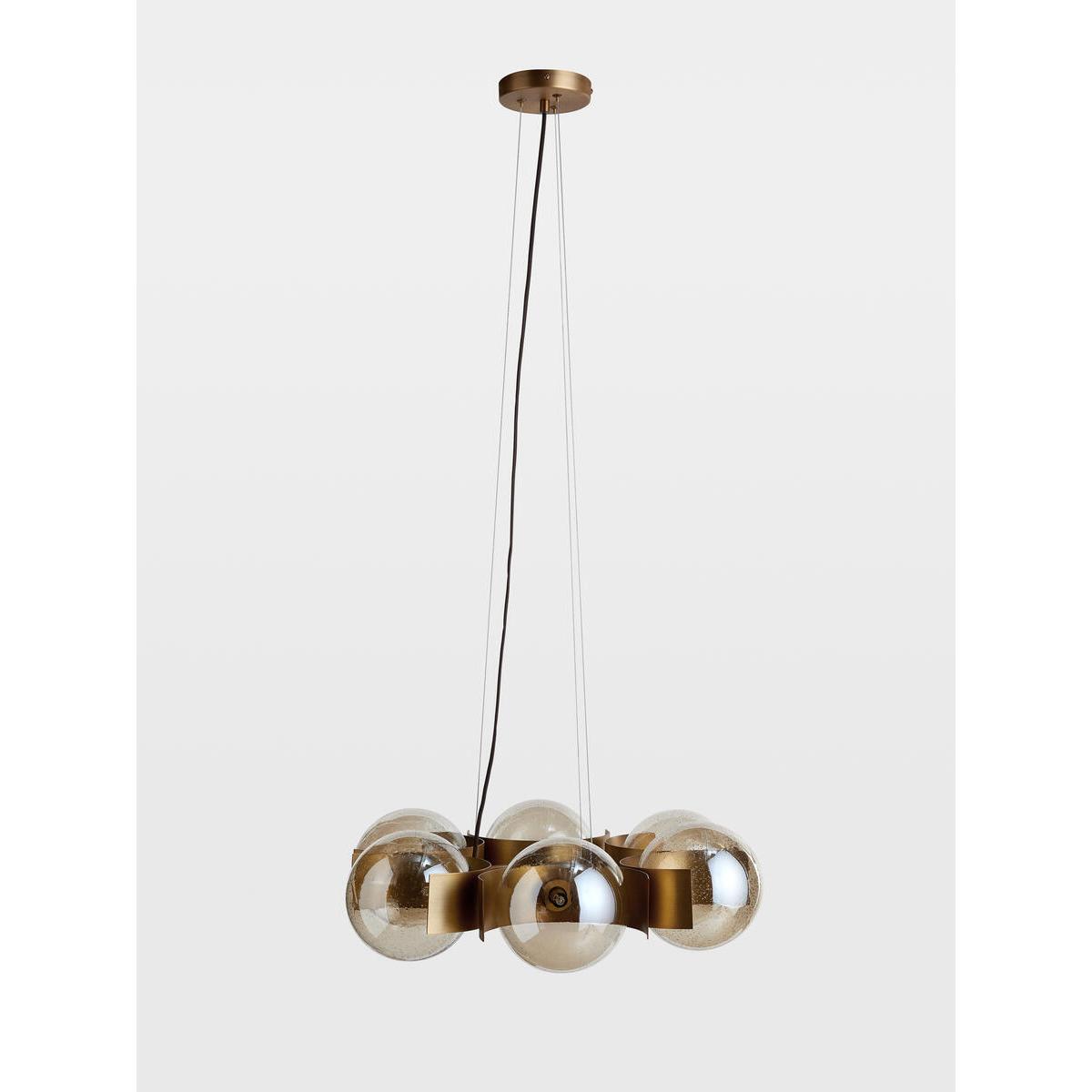 Featuring six tinted glass globes on antique brass frames, thisis a version of the Mid Century-style pendants in the Allisrestaurant at White City House. Daisy Bere of Soho House Designsays 'The one in White City House was based on a vintage find,which we scaled up to suit the space. This smaller version iscloser to the original. The champagne tinted glass with the bubblesalso casts shadows and adds a bit of texture. '. Pendant light with six glass globes. Champagne tint globes with bubbles throughout glass. Antique brass metal frames behind globes. Adjustable height. 6/ G9 / 20. W. Inspired by the lights in The Allis at White City House.