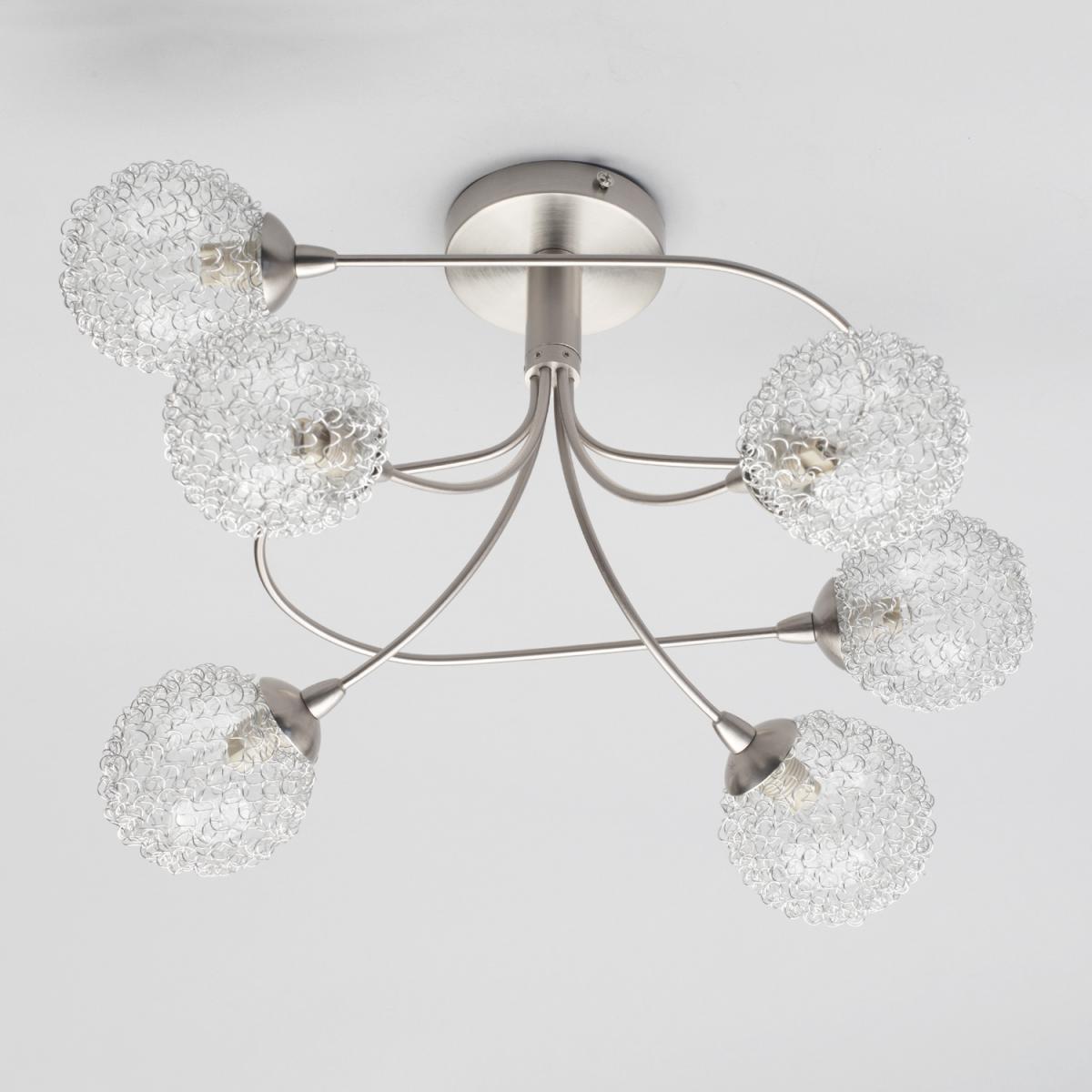 Add a modern accent to your bed room or living room with the Allium Semi Flush Ceiling Light in Satin Nickel. The curved arms of this ceiling fixture allows the 6 shades to spread light to every corner of the room. The semi flush mount allows this ceiling light to work well with vaulted, high or low ceilings.