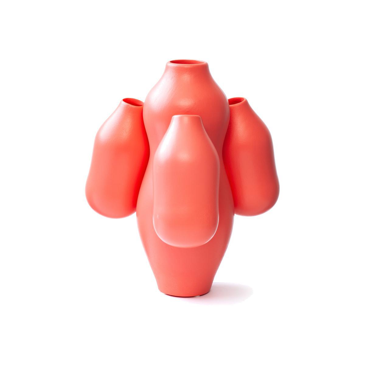 A “bouquet vase” ready to hold a unique, extravagant floral composition… Designed by Jean-Baptiste Fastrez, the Allpa vase has a strong visual impact. A true work of art, this eccentric sculptural piece can be displayed in our interiors as decoration or used to hold flowers. This vase is made of glazed ceramic in northern Italy. Each piece is the result of very meticulous craftsmanship. Allpa consists of a large central vase to which three small vases have been added. The vases merge to create a profuse asymmetrical assembly. The name Allpa comes from Inca mythology. It’s the name of the goddess of fertility, with multiple breasts. To create a superb composition, you can decorate the containers with different flowers. A graduate of Ensci (National School for Industrial Creation), Jean-Baptiste Fastrez took his first steps under the direction of François Azambourg, then the Bouroullec brothers. Since then, he has ploughed his own furrow: hybrid and ultra-creative! For him, the items should have character and cause astonishment, disturb even.