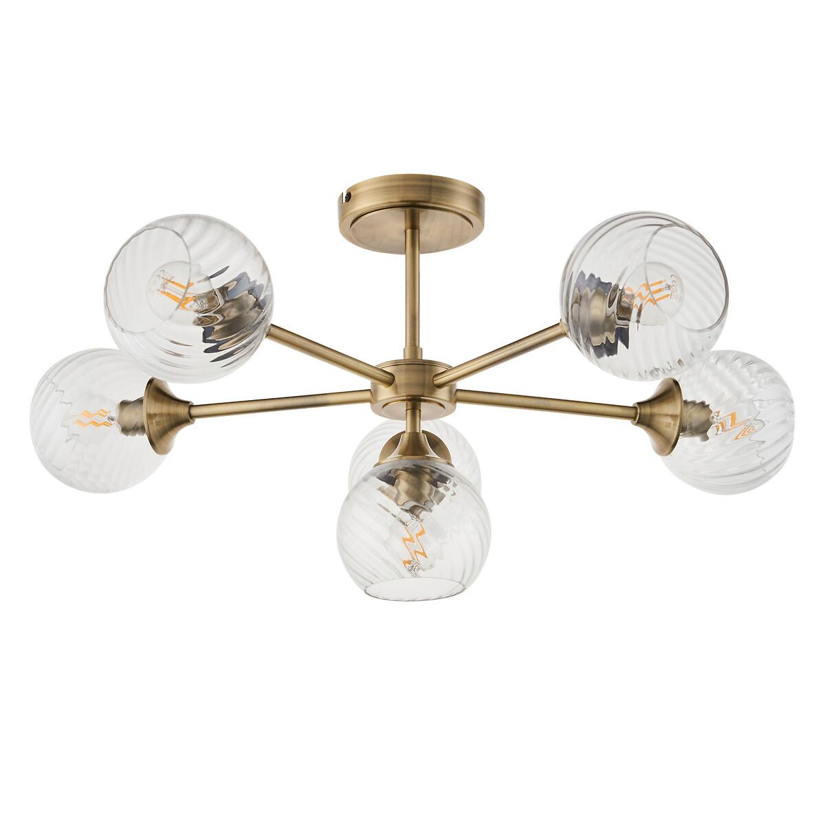 Twisted glass shades give this ceiling light a decorative edge. This 6 light semi flush is perfect for casting light around rooms with low ceilings, finished in a stunning antique brass plate. Matching items also available to complete the look. Product Dimensions- H33xW64xD64cm Bulb Quantity- 6. Bulb Type- 7W LED E14. Dimmable- Yes. This product will be dispatched by one of our trusted suppliers. You’ll be contacted by their selected courier about your delivery. GALLE01