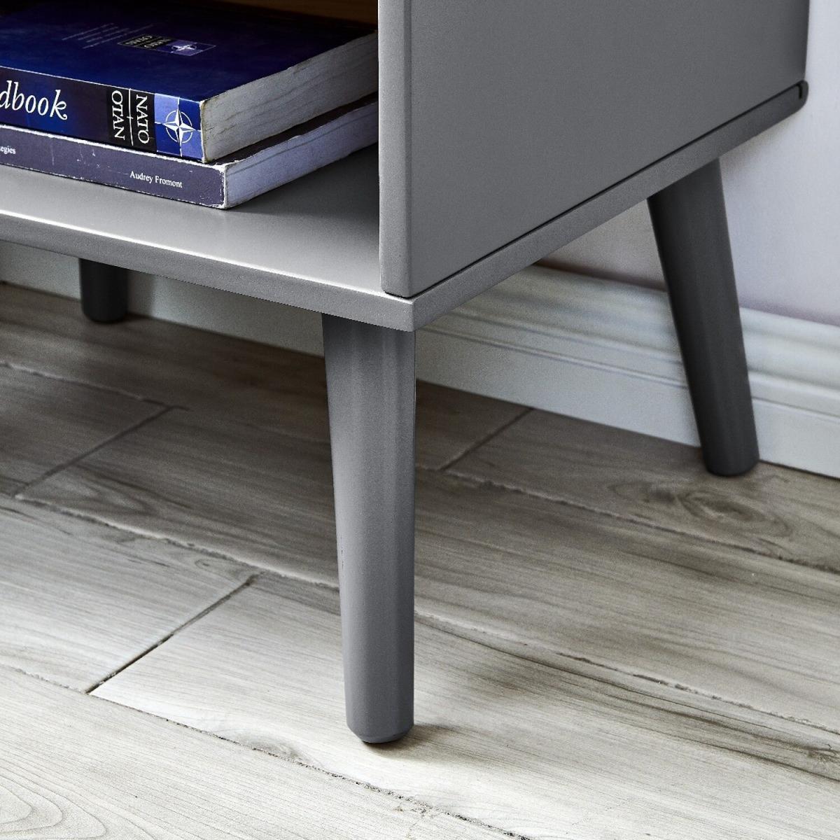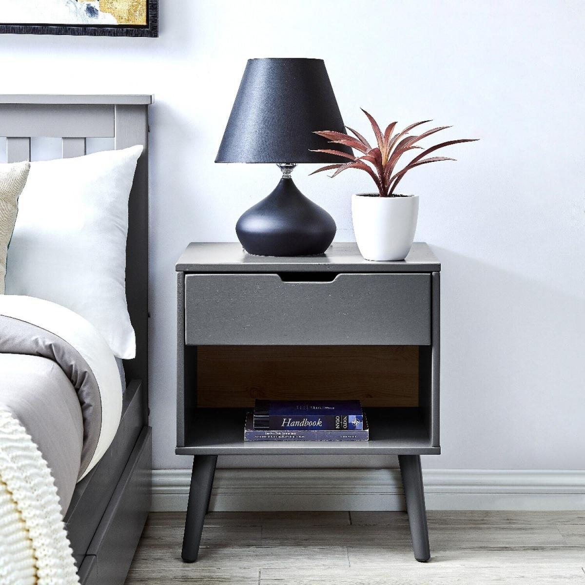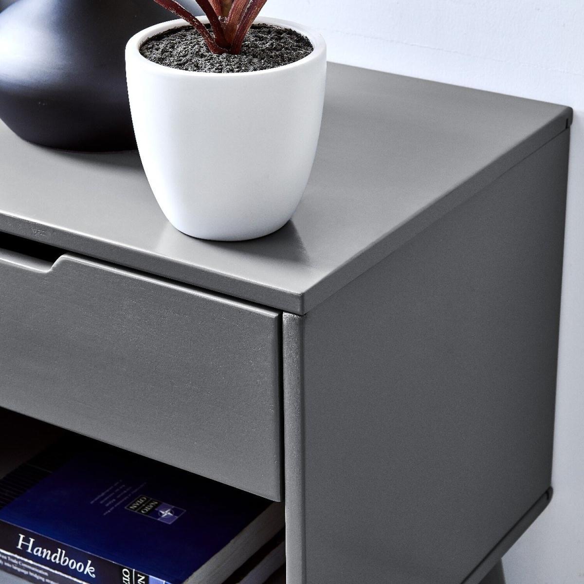 I love this grey bedside table for its clean lines and versatile colour, making it a great addition to a range of interior styles, from modern minimalist to more eclectic schemes. Its compact size offers practical storage without overwhelming the space, and the open shelf is perfect for keeping essentials within easy reach. To style it effectively, consider layering with a traveller-inspired lamp or a ceramic vase for visual interest. It’s also great for adding a touch of colour or texture with books or decorative objects on the shelf or top surface. Overall, it strikes a nice balance between function and aesthetics, making it a smart, stylish choice for any bedroom.