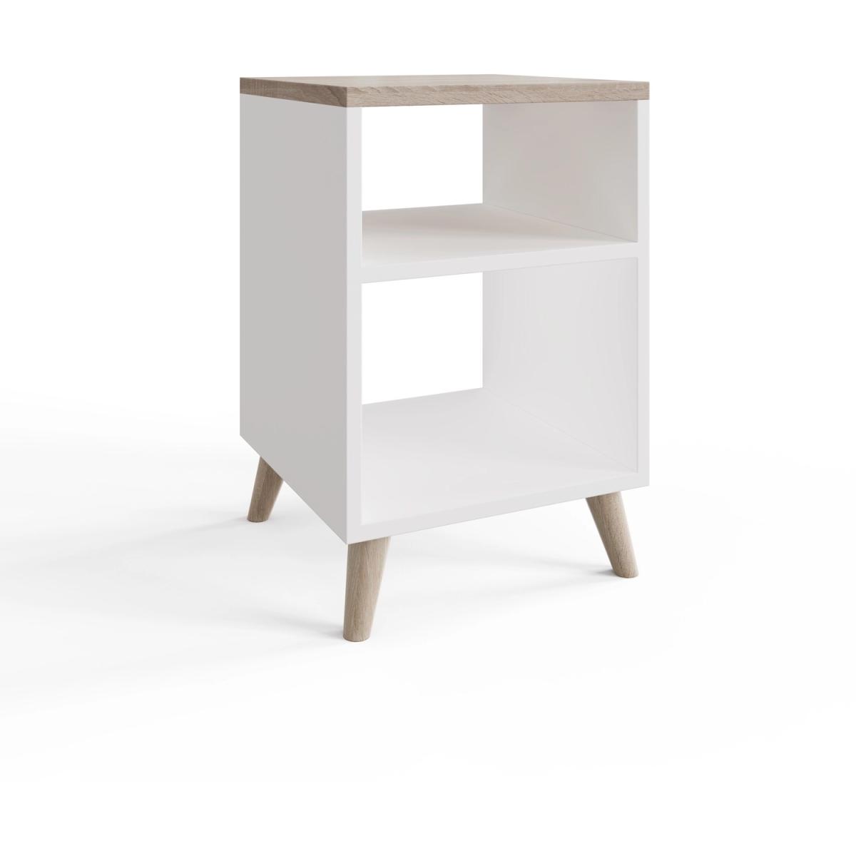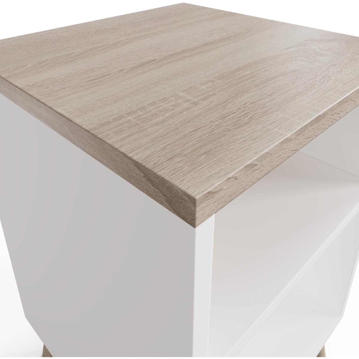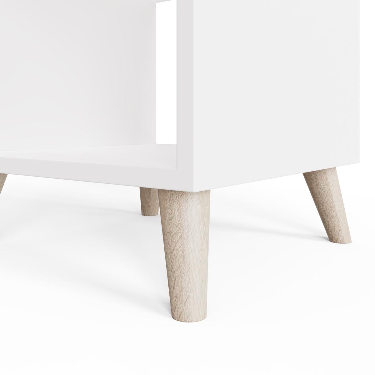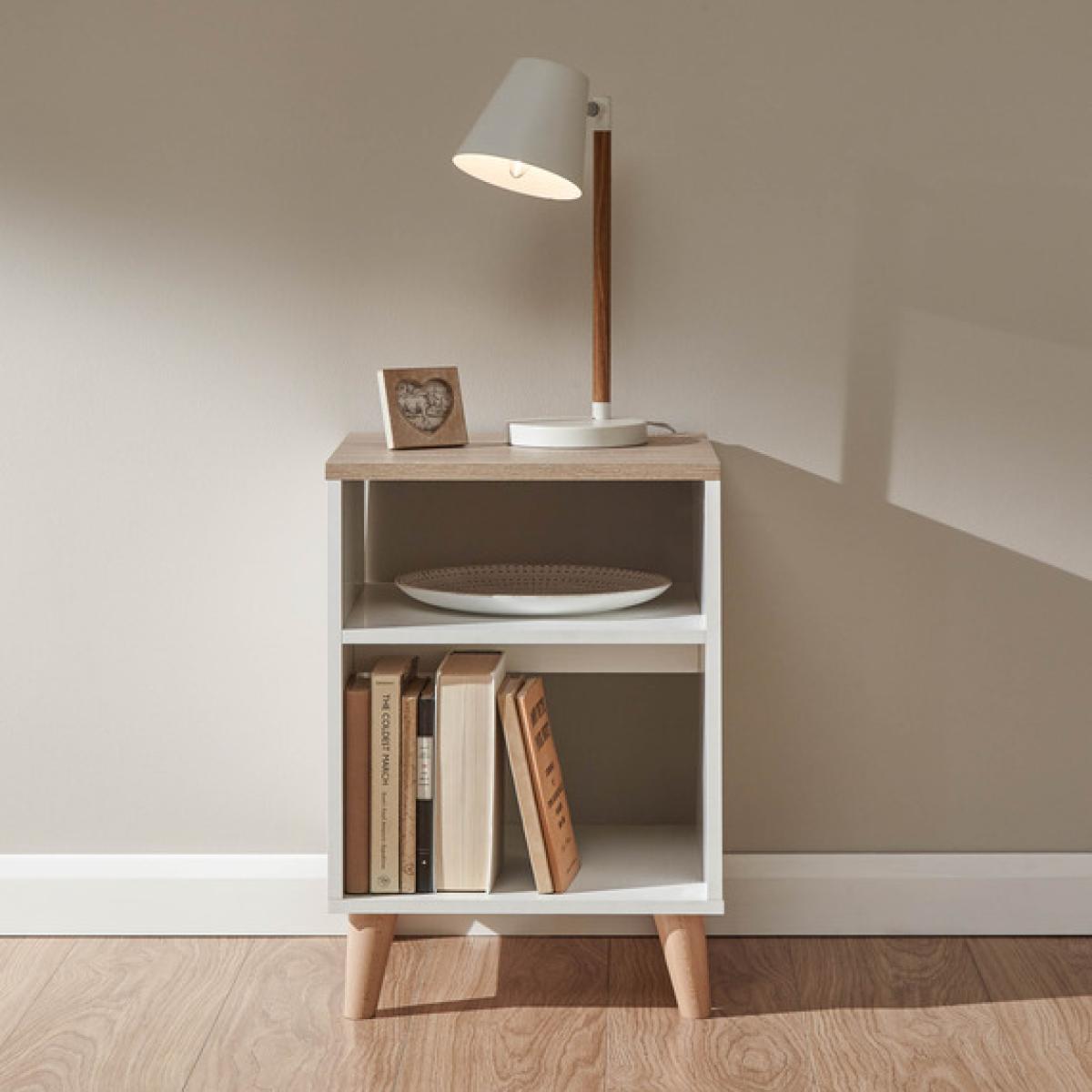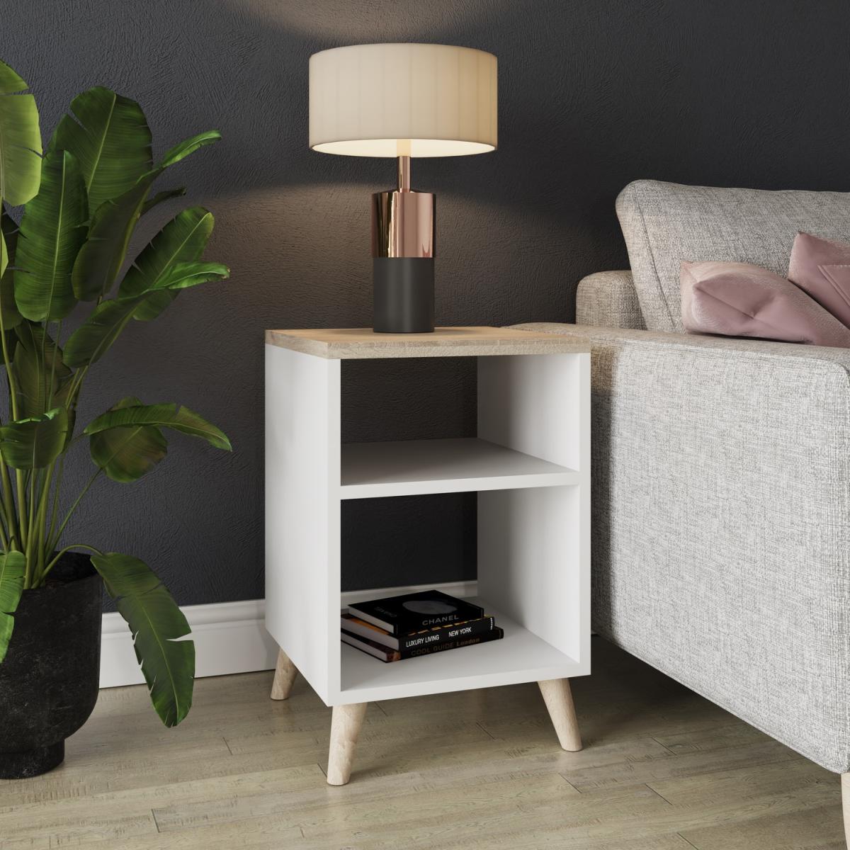 What better match for modern living than a multi-functional furnishing piece that's as versatile as it is stylish? This simple yet elegant lamp table is finished in soft arctic white with contrasting oak-effect top, offering a practical storage option that can double as an occasional table, bookcase or photo display unit. The ultimate occasional table with a double-sided design that means it can be placed anywhere in the room.