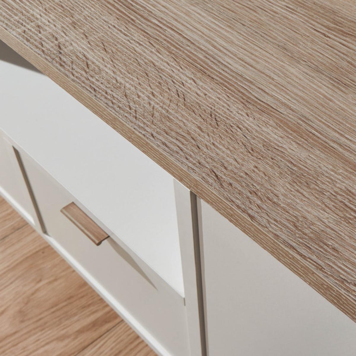 Every home needs a dedicated TV and media station - and Alma offers the perfect balance of style and performance. The design features a pair of ample side cupboards that frame a central stack comprising media shelf with cable access plus two deep drawers that are perfect for media storage. Crisp, contemporary styling with arctic white panels and slender handles make it easy to fit in any decor scheme, while the oak-effect top can support a 60" flatscreen TV.