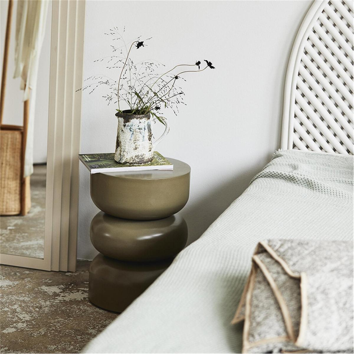 I love this side table for its sculptural form and versatile appeal. Its chunky, rounded silhouette adds a modern touch, making it a great choice for contemporary interiors, but it also works well in eclectic or minimalist schemes. The neutral colour and smooth finish mean it can sit comfortably alongside a variety of colour palettes and textures. Practical styling tips include using it as a bedside table in bedrooms for a streamlined look, or as a corner piece in living rooms to display decorative objects or plants. Its sturdy shape also means it can double as a small stool if needed, which adds to its functionality. Keep accessories minimal for a sleek vibe or layer it with textured or coloured objects to introduce some visual interest.