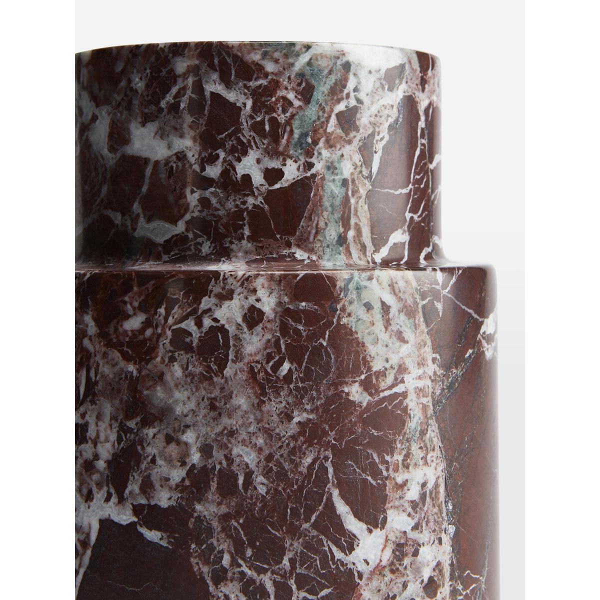 The Alma vase is a decorative accessory cut from a weighty Rosso Levanto marble from Turkey, with deep cherry-red tones and whiteveining in the stone. Display with other marble pieces, includingour Alma and Emilia vases to mirror the marble decor seen at 180. House. Red marble vase. Natural marble stone. Each piece is unique. Decorative purposes only. Designed to pair with all marble vases. Inspired by 180 House.