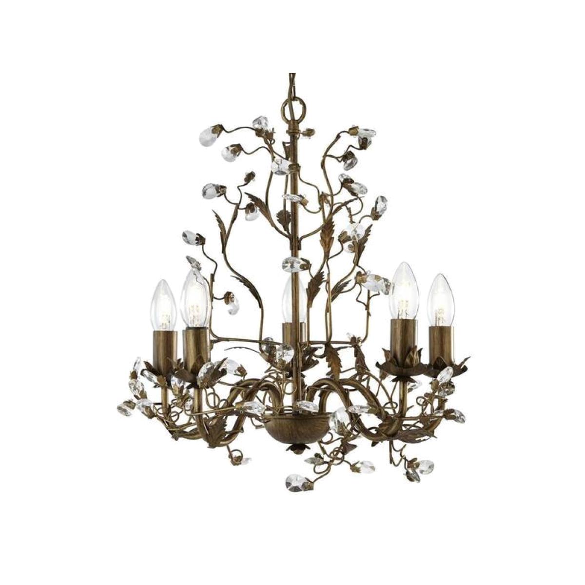 Almandite 5 Light Ceiling Pendant Floral Leaves Brown gold Crystals, E14 - Brown gold