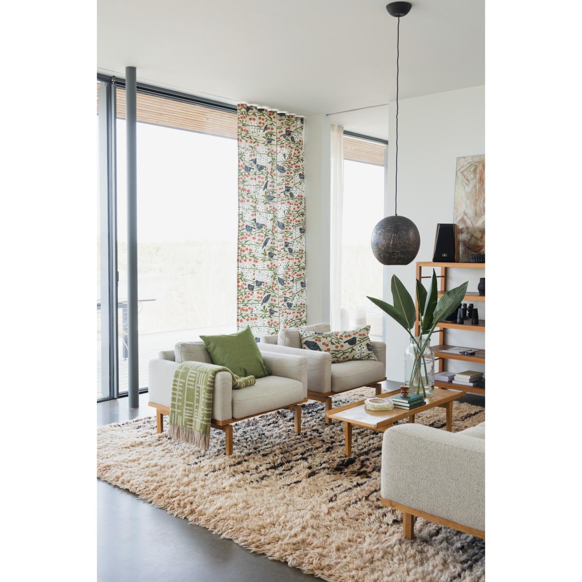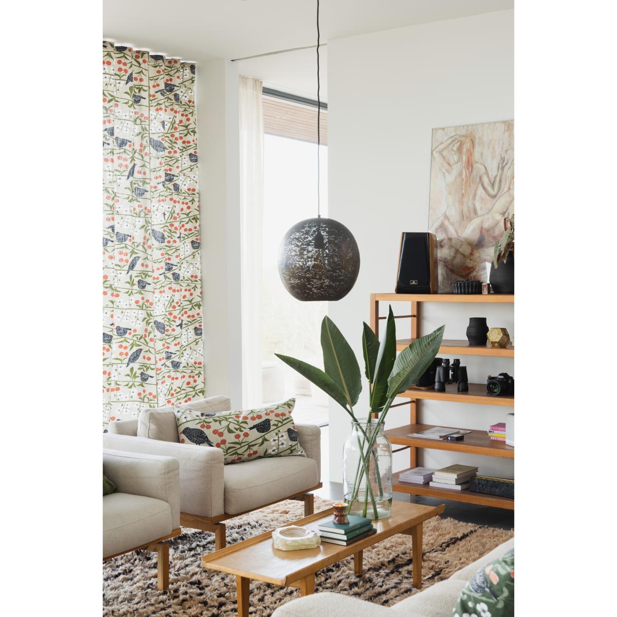 I love this cushion cover for its charming, understated design. The cherry orchard print adds a touch of nature-inspired pattern, while the beige background makes it versatile enough for both neutral and more colourful furnishings. It works particularly well in Scandi or minimalist interiors that benefit from a subtle hint of colour and pattern without feeling busy. Practical styling tips include pairing it with textured throws in earthy tones for a layered look, or combining it with other cushions in complementary colours for a relaxed yet curated sofa arrangement. Its size makes it ideal for smaller sofas or armchairs, adding cosy character without dominating the space.