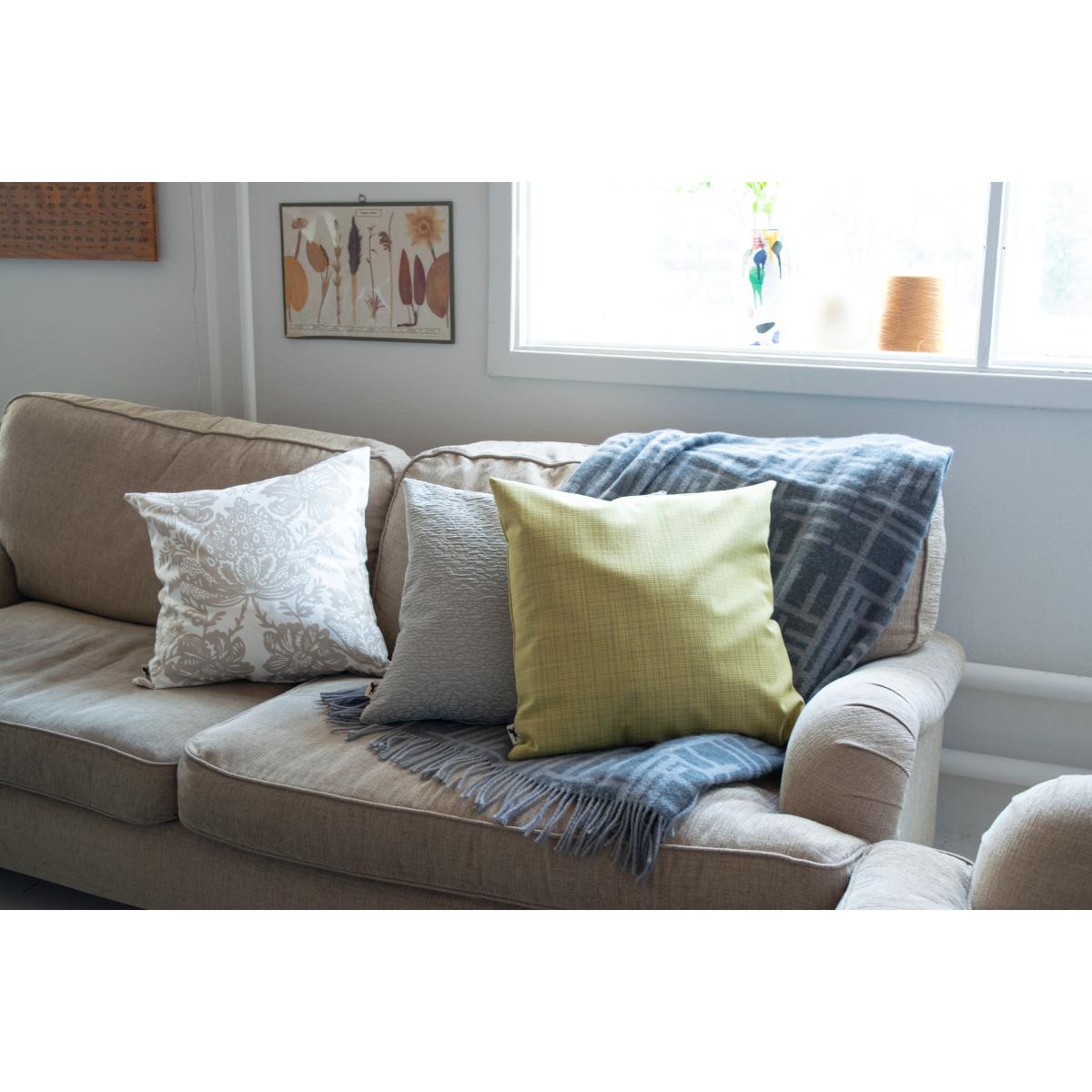 Kvarts cushion cover 50x50 cm from Swedish Almedahls is a yellow cushion cover made of flame-retardant polyester. Pair the cushion cover with a matching inner cushion and display it as an inviting detail on your sofa or bed.