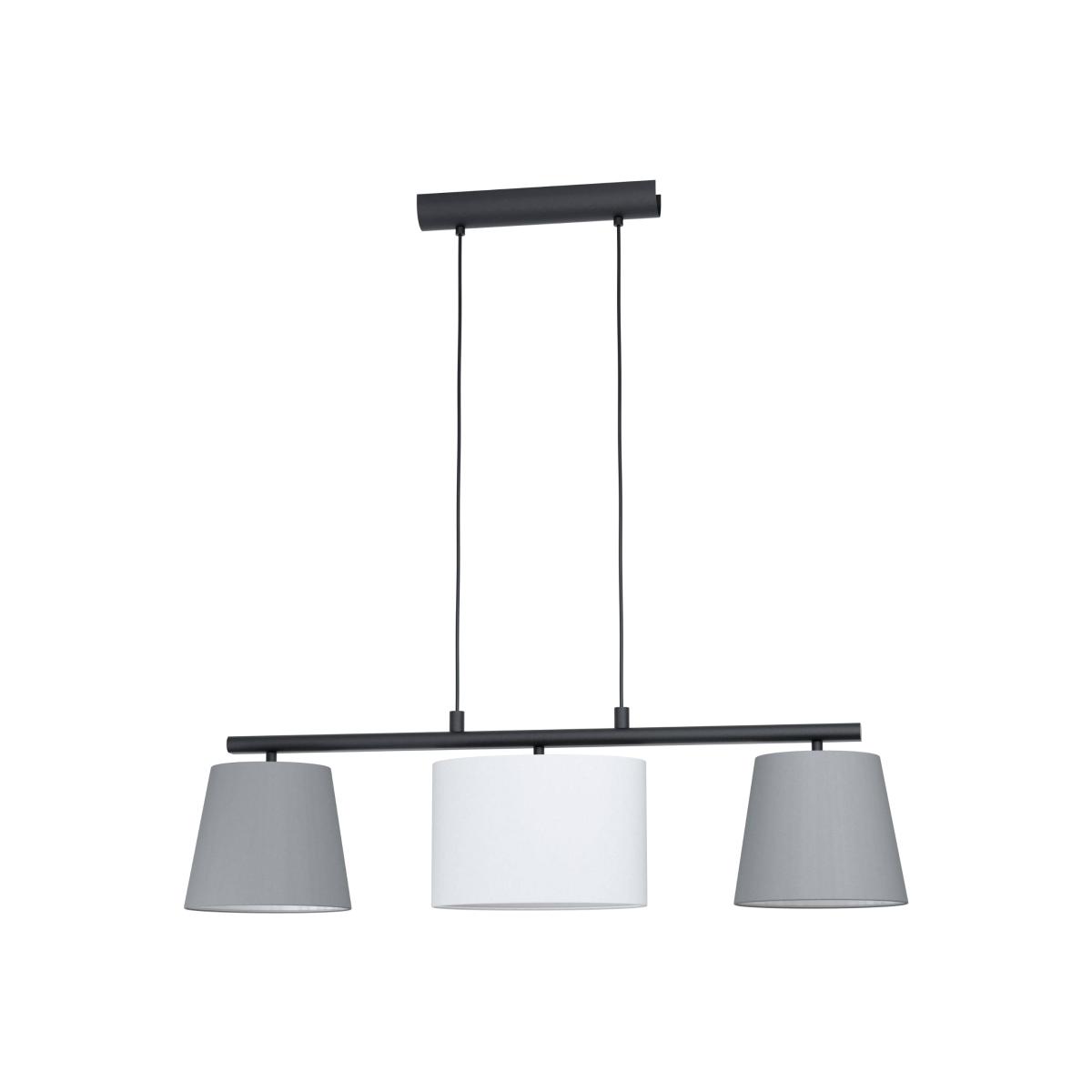 Scandinavian pendant ceiling bar featuring grey ceiling light shades. Modernise your kitchen islands or dining room tables with the stunning Almeida 3 light ceiling bar. A unique design featuring grey and white fabric light shades, suspended from a black ceiling bar, creating a minimal and versatile design. The finishing touch to your kitchens and living spaces, this contemporary ceiling light is set to wow your guests. Create a soft, warming glow with our LED Vintage light bulbs.