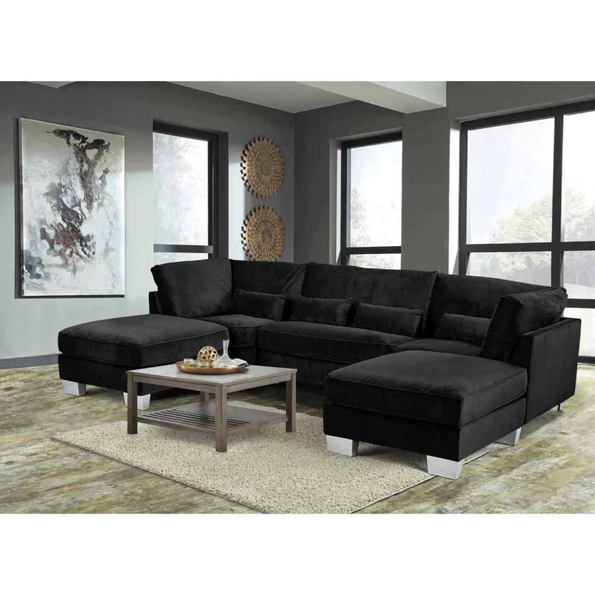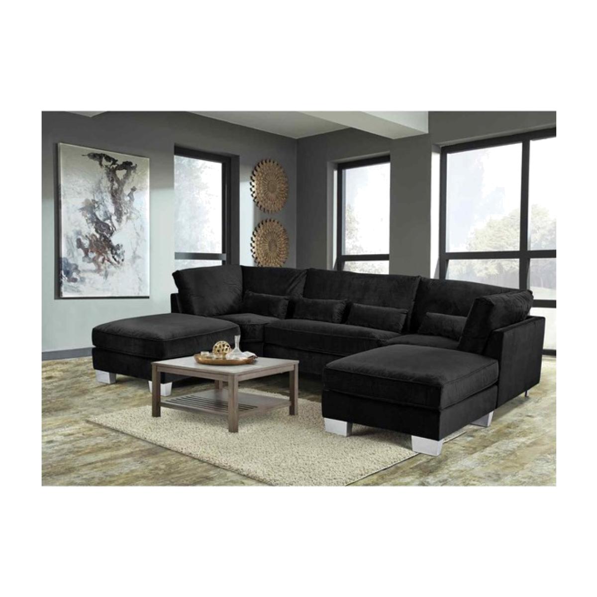 Almora Full Back Corner U Shape Sofa Velour Fabric with 2 Footstools - Cosmic