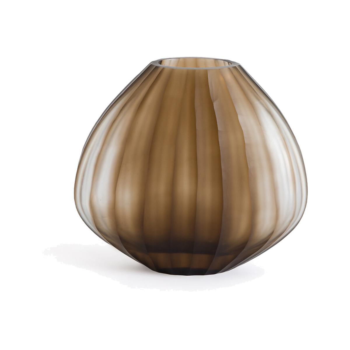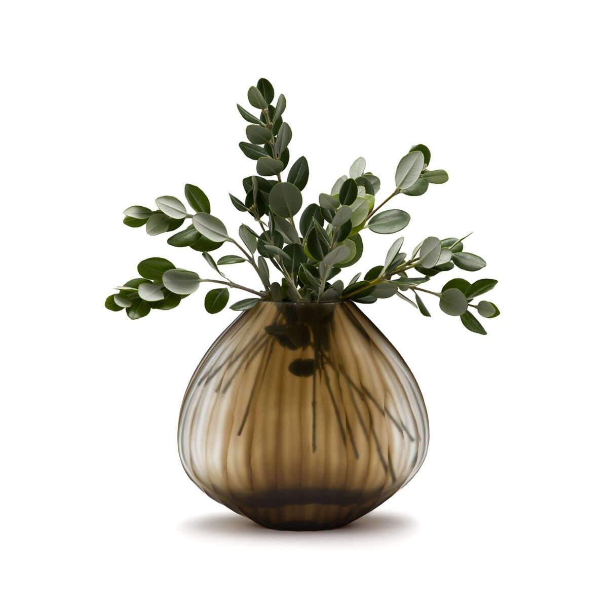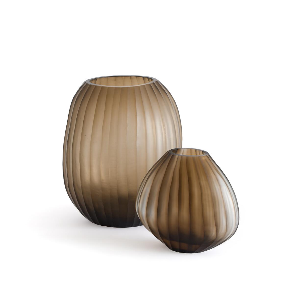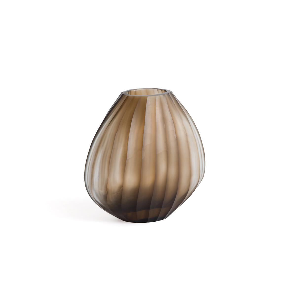 As if carved in the rock, the shape and neckline of the small Almora vase highlight small bouquets or a few flowers and branches. The nuanced appearance and raised ridges of the frosted glass are handcrafted.