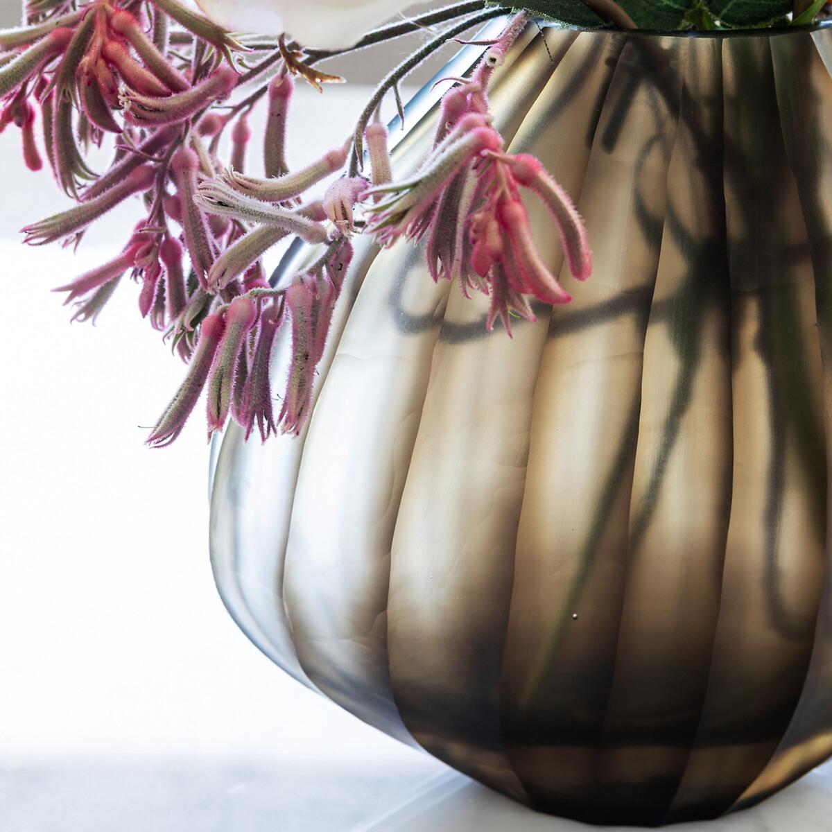 I love the way this small ridged frosted glass vase adds subtle texture and a soft, muted hue to a space. Its neutral tones make it incredibly versatile-perfect for both modern and more traditional interiors. It works well on a mantelpiece, side table, or as a centrepiece with a few seasonal blooms or dried stems for a low-maintenance decorative touch. When styling, consider pairing it with objects that have varying textures, like matte ceramics or metallic accents, to create visual interest. Its size and shape also mean it’s ideal for smaller vignettes or layered groupings, ensuring it enhances without overwhelming the space.