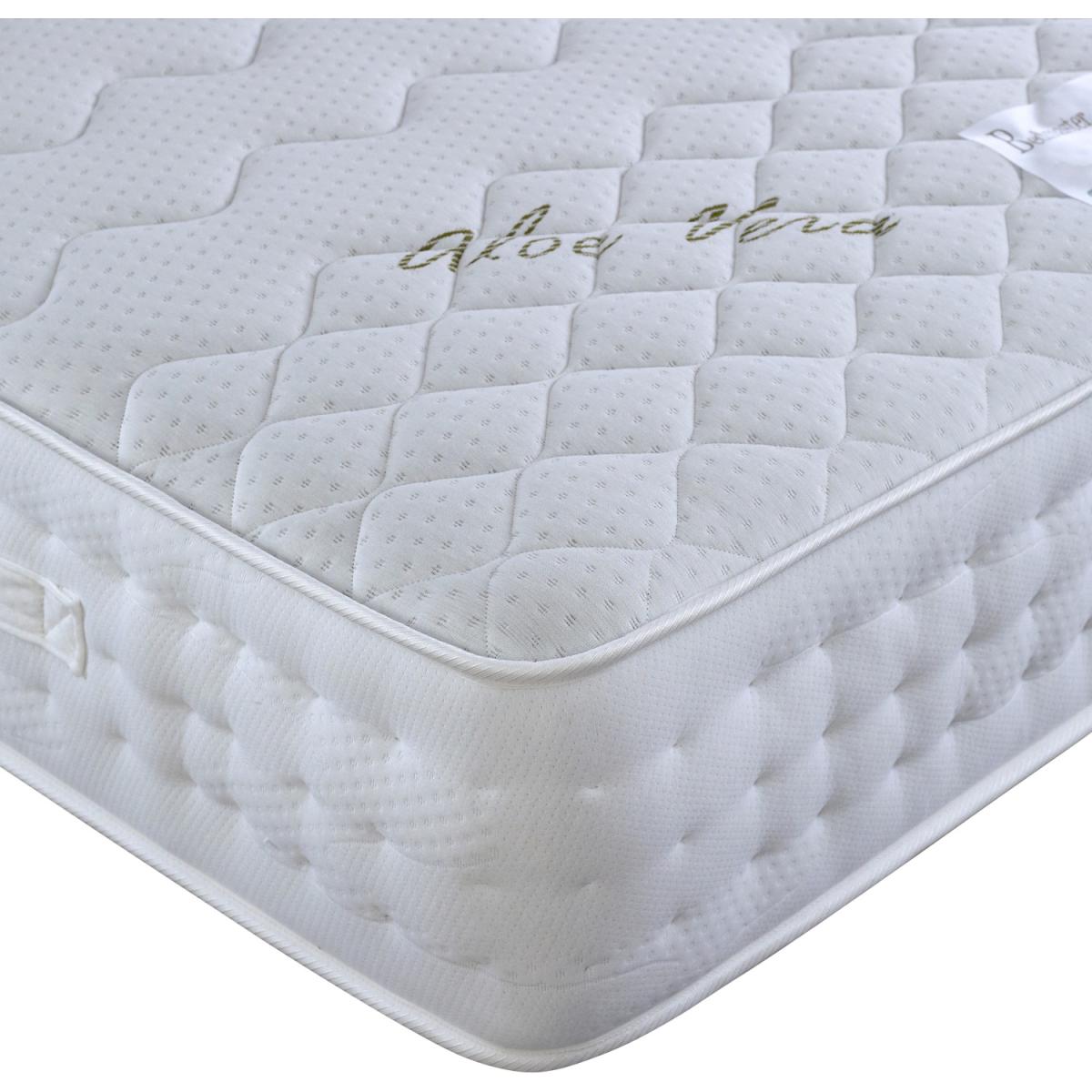Adorned with Aloe Vera infused micro quilted panels all around. A rejuvenating mattress with thick layers of memory foam, reflex foam and many durable fillings for comfort and support. Ample fillings including satin pads, polyester, visco memory foam and pocket springs make this a fantastic choice for any bedroom. Air vents that allow circulation of air throughout the mattress. The foam layers coupled with the pocket spring core make this a popular mattress. Medium firmness and very comfortable, a modern and refreshing mattress. Finished with a soft to touch fabric and side stitched borders with handles for easy maintenance.