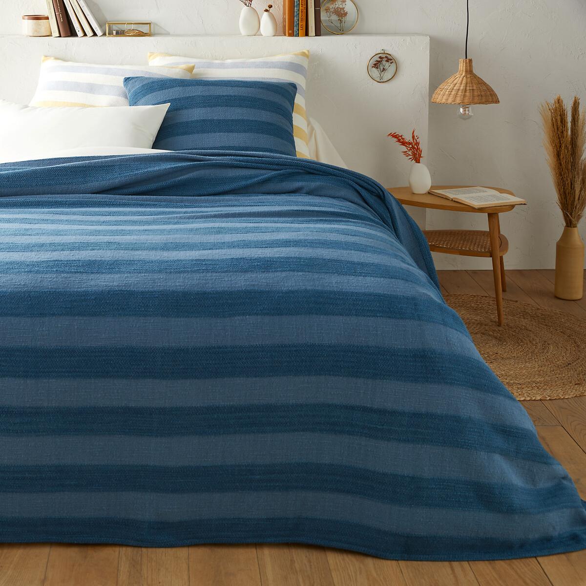 In shadesof blue, the stripes energise and brighten up the room. The Aloes bedspread has a graphic and contemporary design. Designed by La Redoute Interiors. Product Details • 100% cotton • Front/back tone-on-tone striped pattern print • Natural edge finish. Care instructions • Machine washable at 40°C • By washing your laundry at 30°C instead of 40°C, you limit energy consumption. Dimensions • 180 x 230cm • 230 x 250cm • OEKO-TEX® Standard 100. Standard 100 certification by OEKO-TEX® tests textile products for harmful substances via an independent, international label.