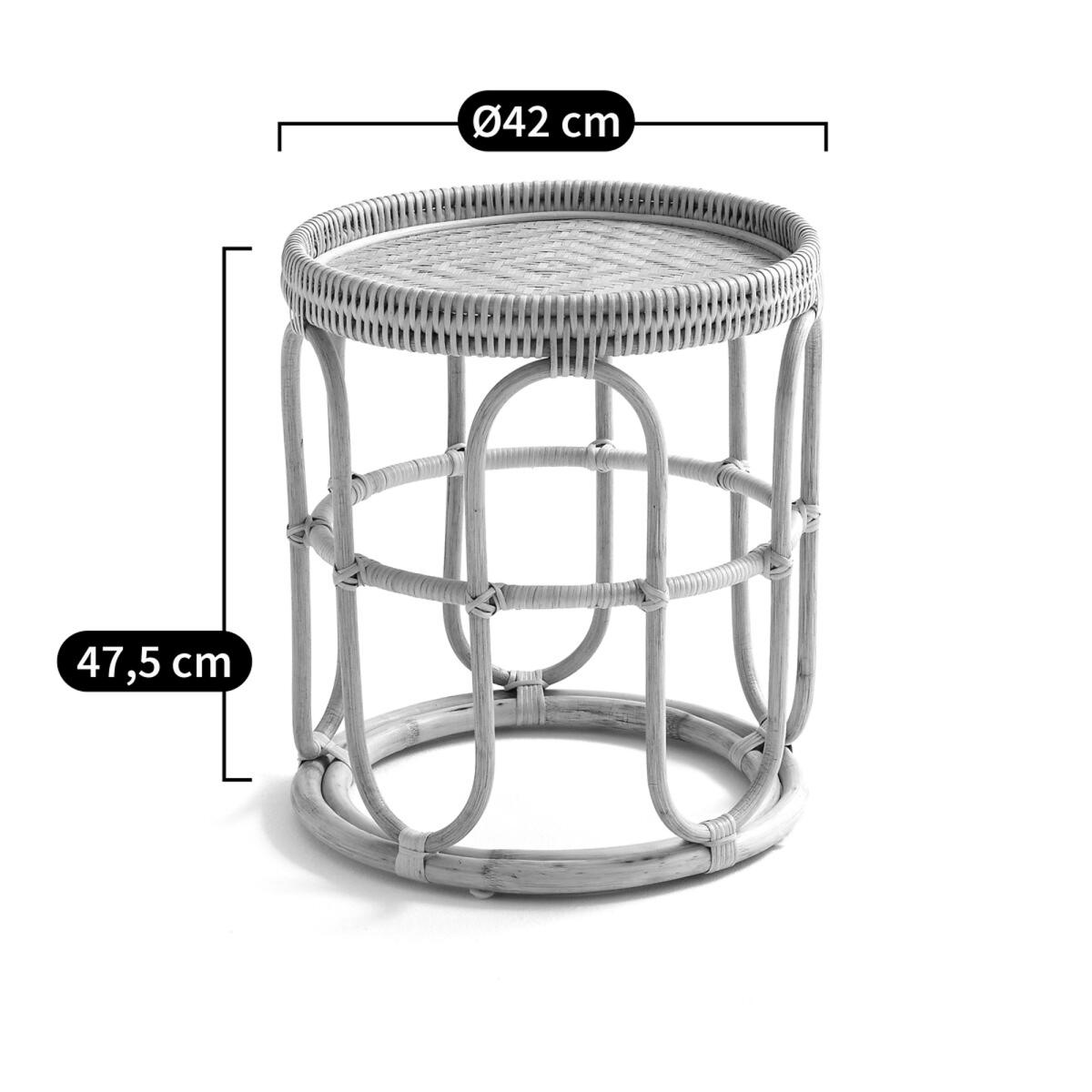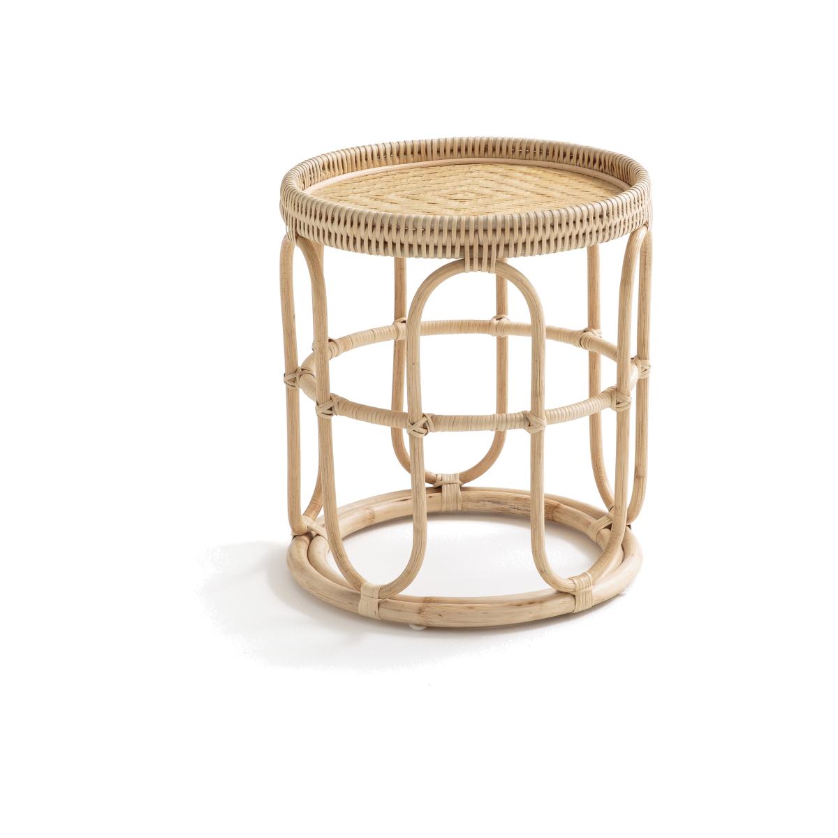 Aloki side table. Carefully handcrafted from bamboo and rattan, this stylish side table is perfect for beside a sofa, or even as a bedside table.. Product Details:. Plywood top covered with bamboo braiding. Rattan structure and links. Nitrocellulose finish. Handcrafted. Dimensions:. Diameter 42 x Height 47.5cm Parcel dimensions and weight:. L44 x H50 x D44cm, 3.8 kg.