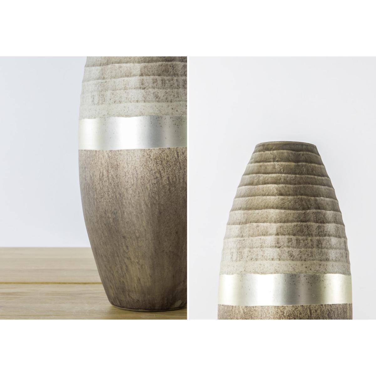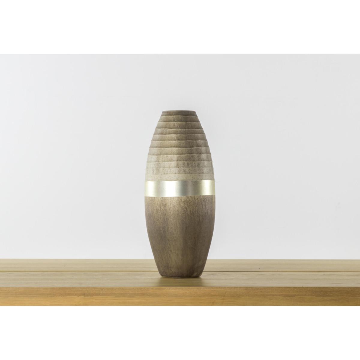 Stunning textures and glazes combine in the Alondra Bronze Gold Patina Vase, featuring a natural and opaque ridged pattern with Gold toned stripe accent across the centre. Teamed with a simple and elegant shape, this vase is the perfect display platform or simply stunning on its own.