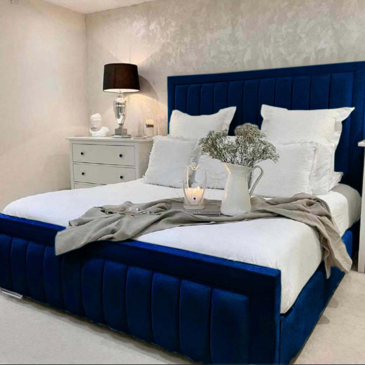 This bed is created in regards to modern style and gives you a look of latest trends to decorate your bedroom. The patterns created on this bed are based on unique but exquisite longitudinal margins that creates a graceful appearance. Furthermore, these elegant patterns are craved out on finest quality of velvet that enhance the aesthetic aspect of this bed. In addition, this bed also features a sublime experience of softness and coziness to offer you with a sound sleep that you have yearned for decades. Succinctly, our beds are the kinds of bed that you dream to possess and experience a relaxing slumber to eradicate all the tired of the weary days. Headboard Height 125cm