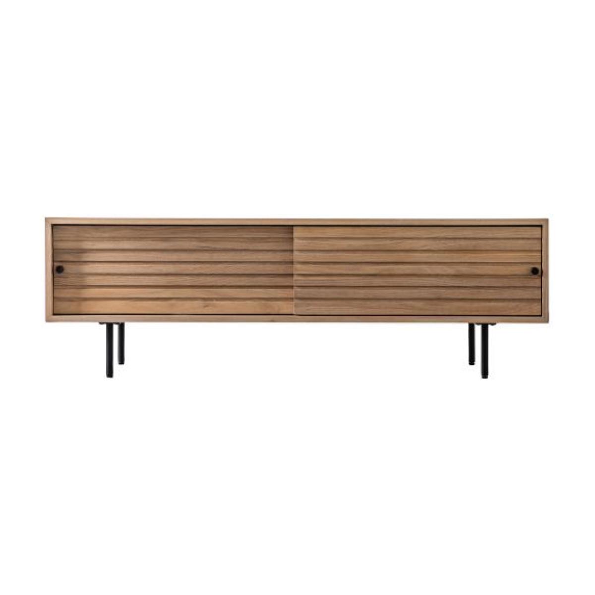 The Alora collection offers a range of living, dining and bedroom furniture offering a beautiful contemporary Japandi style. Crafted from solid oak and oak veneers, great attention to detail has been given to the design across the range to create these stunning pieces. The Alora Media Unit features sliding doors crafted from solid oak with routing detailing to echo the slats of other pieces in the range. Black metal legs and handles add the finishing touch. Material: Oak. Colour/Finish: Natural.