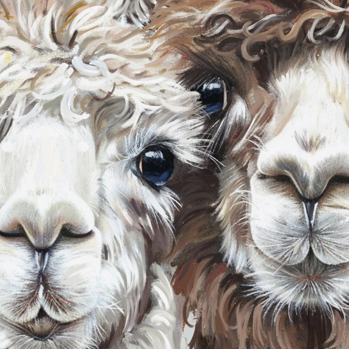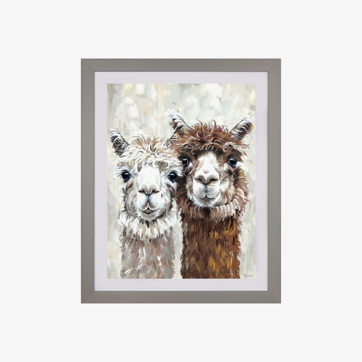 Looking for a piece of art that's both adorable and stylish? Meet the Alpaca Duo. This delightful wall art features two cute alpacas, one with a soft white fleece and the other with warm, chocolatey brown fur. Their friendly faces and fluffy textures will add a touch of playful charm to any room.