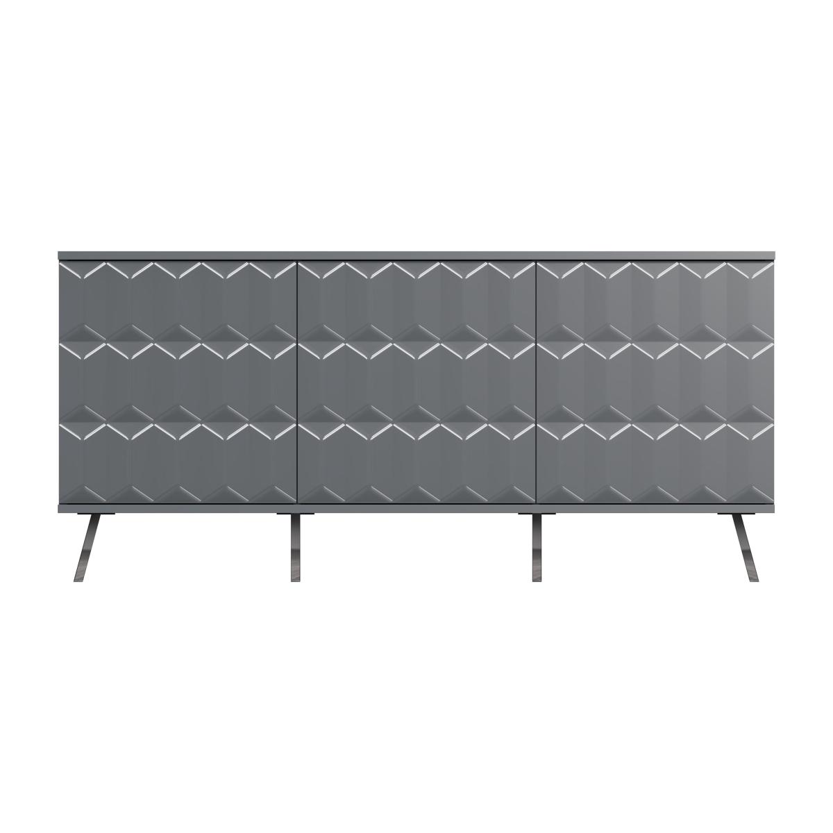 Statement design meets state-of-the-art technology in the 3-door Alpha sideboard. Its bold contemporary look is matched only by its built-in SMART technology. Why you'll love it Striking 3-door sideboard has many hidden talents. A bold contemporary look with seamlessly integrated technology. Built-in SMART LED lighting controlled via smart speaker or app. Discrete wireless phone charging point. Statement design with 3-dimensional geometric door fronts. Choose high-gloss white, high-gloss grey or semi-gloss black. Designed for everyday living with scratch-resistant frame. Interior colour perfectly matches the exterior. Fast and easy click-together self-assembly. A Furniture Village online exclusive. This 3-door sideboard with SMART LED lighting is part of the Alpha range. What you need to know Double-door cupboard has 2 adjustable shelves. Single-door cupboard has 1 adjustable shelf. Do not use abrasive cleaning products. Wipe clean with a damp cloth, and dry with a soft duster. We recommend using coasters and placemats at all times. WARNING!