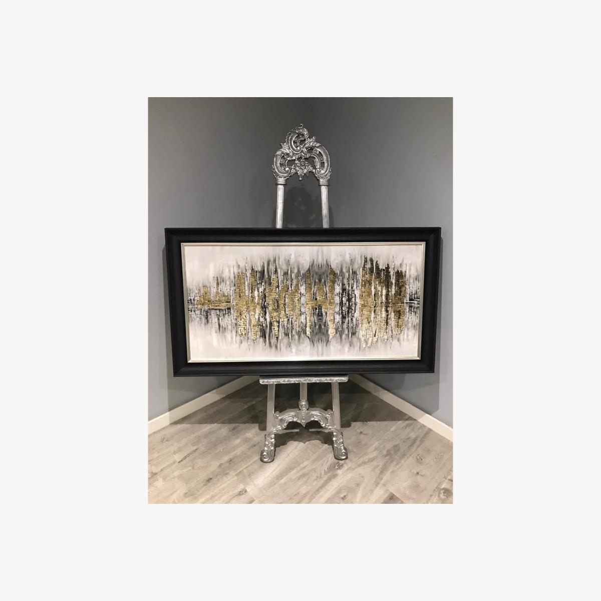 I love this piece because of its modern, abstract aesthetic that can elevate a range of interiors. It works particularly well in contemporary or minimalist spaces, where it can serve as a focal point on a neutral wall. For practical styling, consider pairing it with sleek, understated furniture to let the artwork stand out, or hang it above a console or sideboard for added impact. Due to its framed presentation, it’s versatile enough to suit both residential and commercial settings, adding a sophisticated touch without overwhelming the room. The artwork's subdued palette makes it quite adaptable, allowing it to harmonise with various colour schemes while adding visual interest.