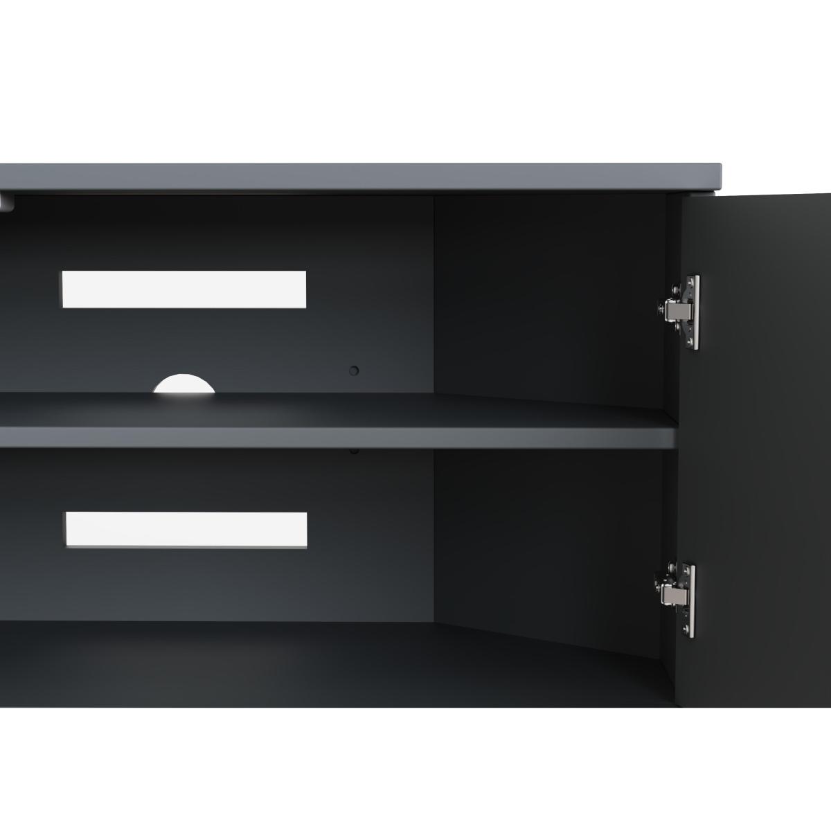 With Intelligent Eye technology and integrated SMART LED lighting, this corner TV unit is a high-tech match for your TV and media components. Why you'll love it This space-saving corner TV unit has all the high-tech features you want. A bold contemporary look with seamlessly integrated technology. Built-in SMART LED lighting controlled via smart speaker or app. Intelligent Eye technology means remote controls work even with the doors closed. Statement design with 3-dimensional geometric door fronts. Choose high-gloss white, high-gloss grey or semi-gloss black. Designed for everyday living with scratch-resistant frame. Interior colour perfectly matches the exterior. Fast and easy click-together self-assembly. A Furniture Village online exclusive. This corner TV unit with SMART LED lighting is part of the Alpha range. What you need to know 1 double-door cupboard with 2 adjustable shelves. The finish may show small surface scratches, a result of the finishing process. Do not place in direct sunlight. Do not use abrasive cleaning products. Wipe clean with a damp cloth, and dry with a soft duster. We recommend using coasters and placemats.
