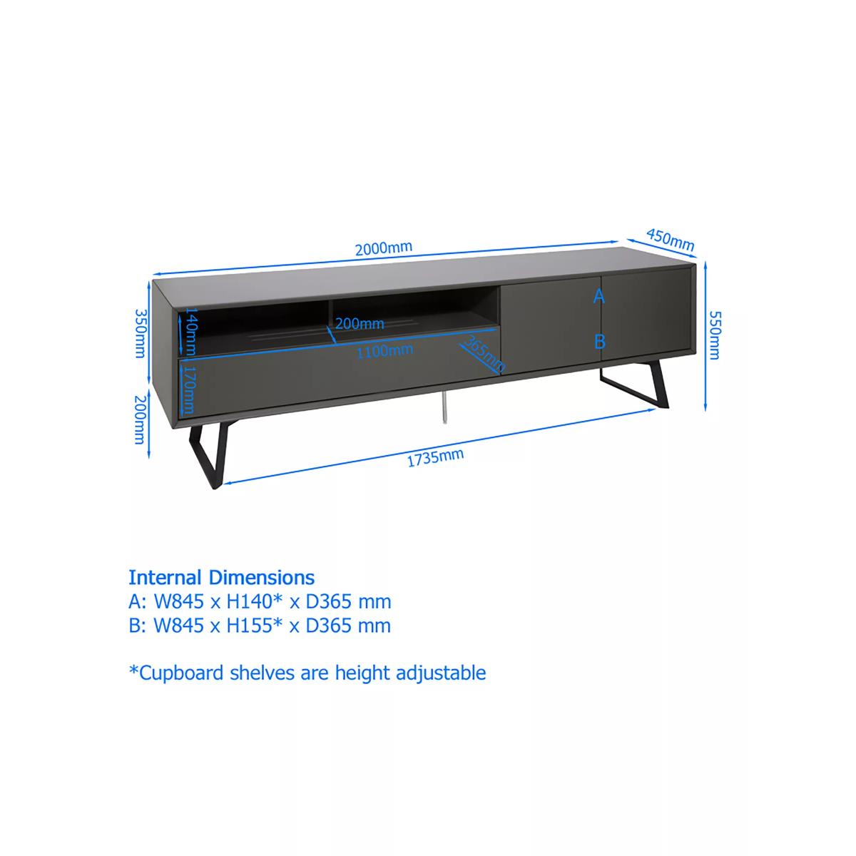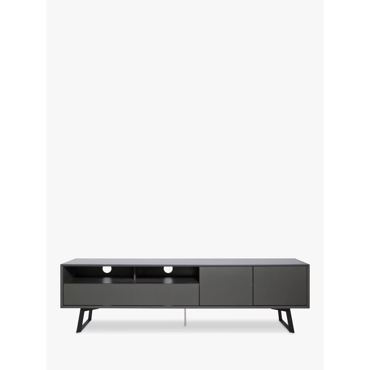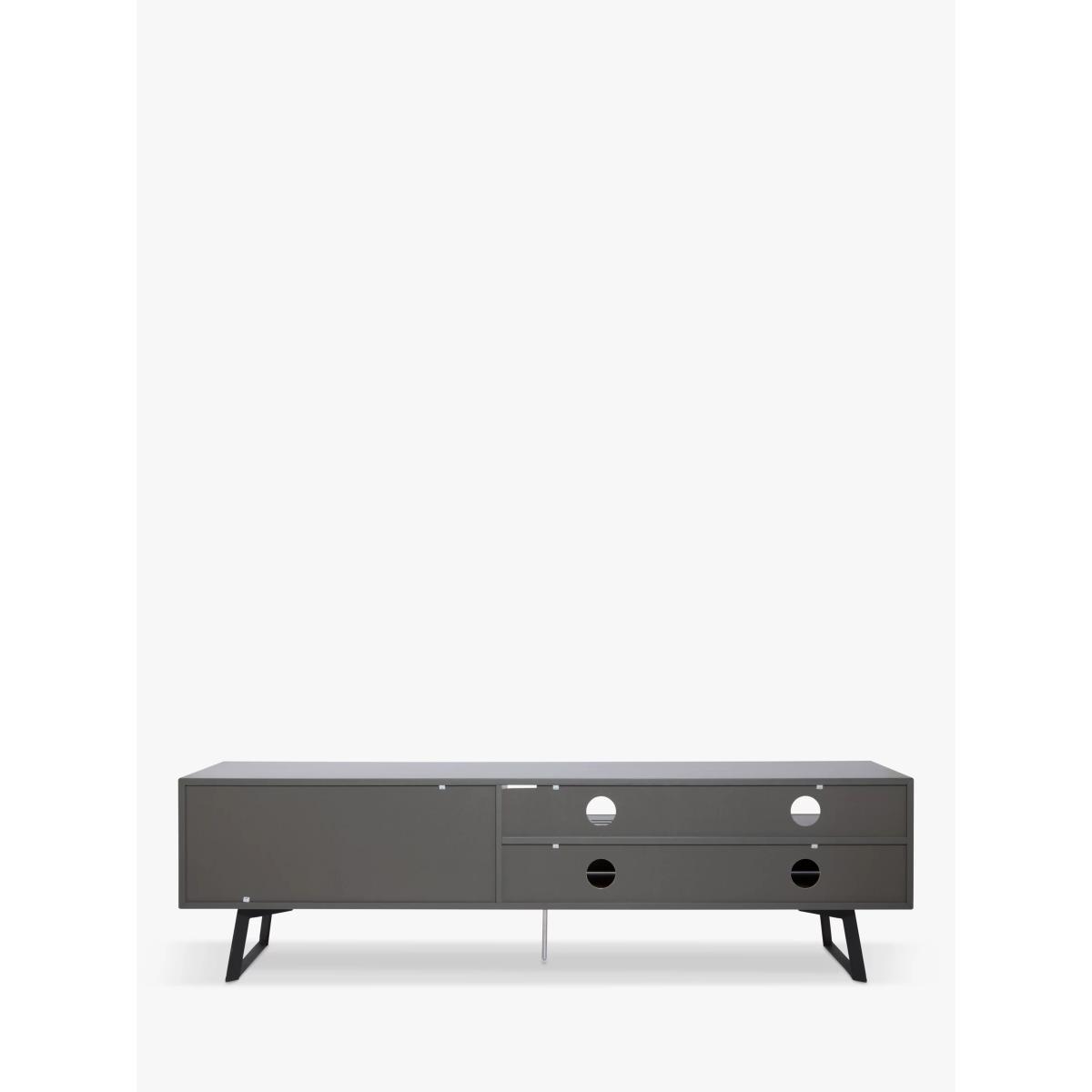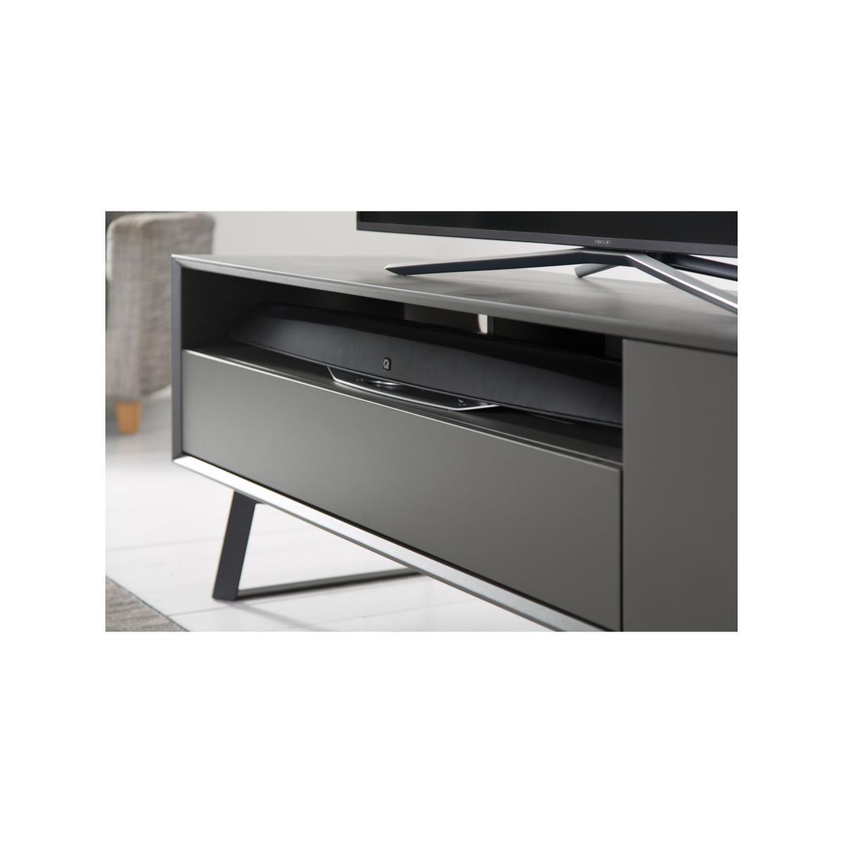 Sleek, Scandinavian-inspired design makes Alphason’s Carbon 2000 TV stand a stylish and practical home entertainment hub. Its minimalistic looks have a matte finish complemented by industrial-style black legs. Comfortable housing TV screens up to 90”, it also features passive ventilation for optimum storage for your equipment. The open top section is great for sound bars, and cable management features keep connecting cables tidily out of view. Features: Enclosed TV cabinet with flip-down storage Angled black steel legs Cable management features Passive ventilation keeps air flowing around your AV equipment Open shelf suitable for sound bars up to 1100mm sound bars Any maximum TV size quoted is a recommendation only and the exact dimensions of the TV's pedestal/feet should be checked to ensure it fits prior to purchase.