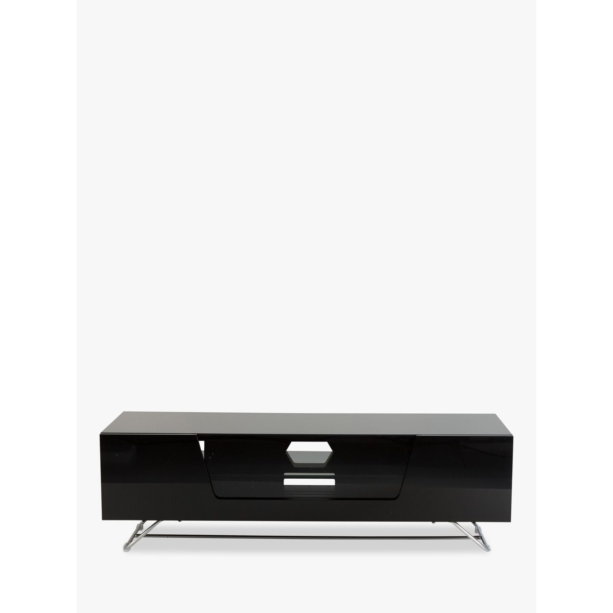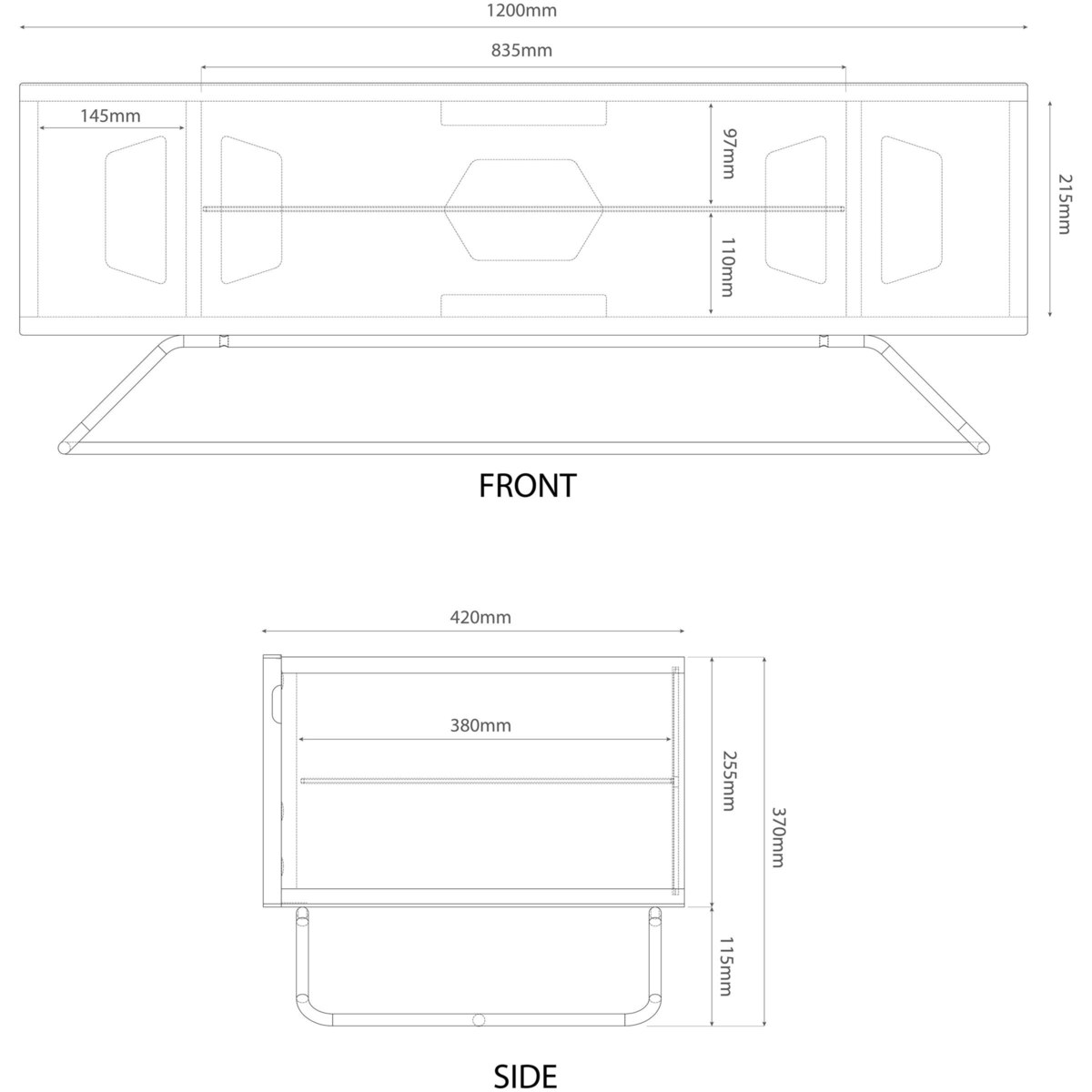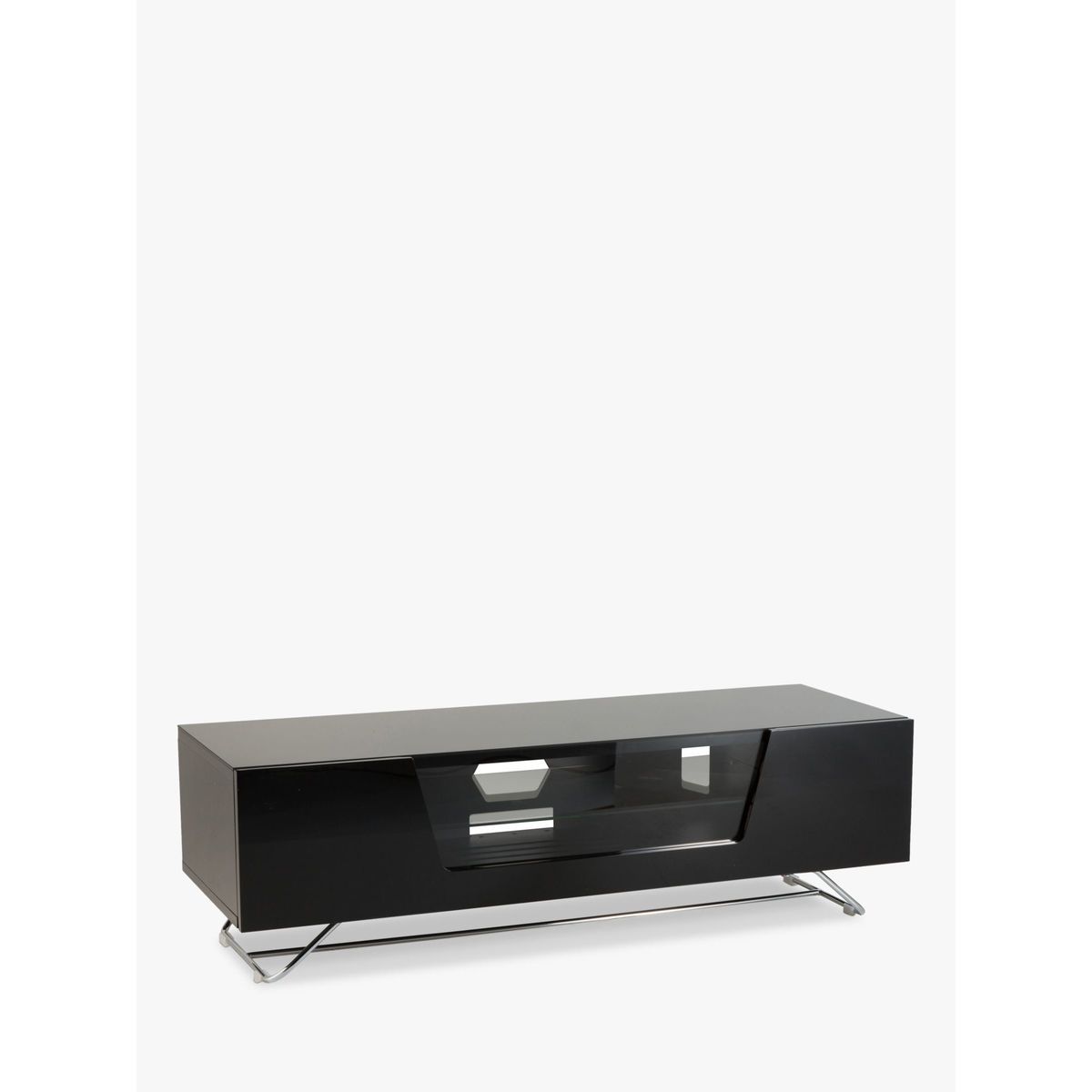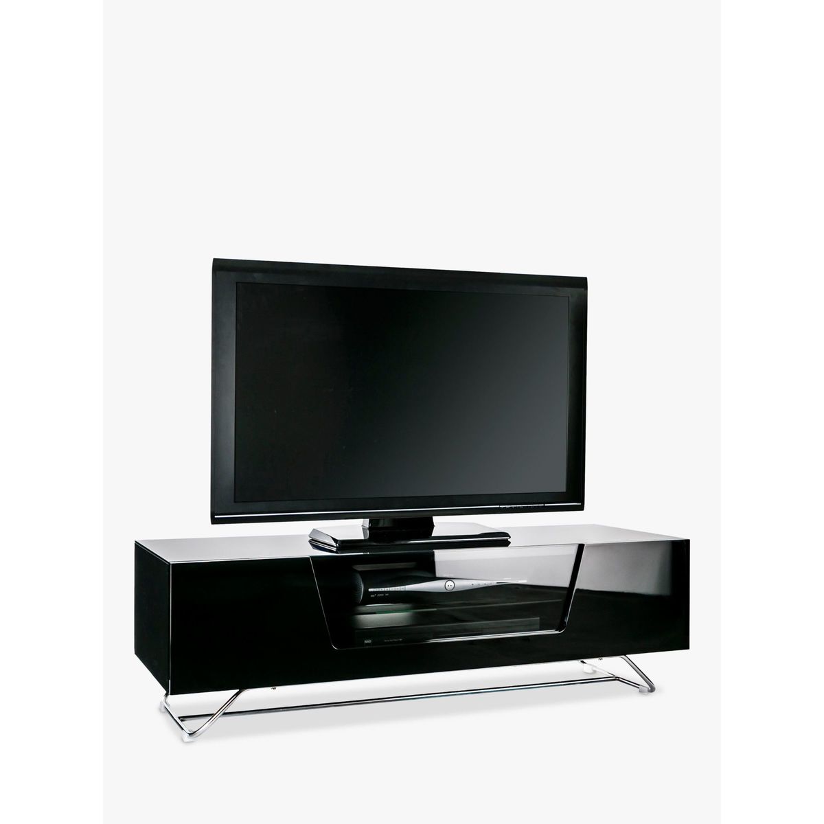 The Chromium 1200 cabinets epitomise modern furniture styles and have been designed to perfectly complement the latest super slim TVs. Not only can it support your 60-inch TV, the TV stand can also make room for a games console, Blu-ray/DVD player, Apple TV and other AV equipment on its internal middle shelf. It is even suitable to house soundbars with a maximum width of 830mm. This has passive ventilation to ensure that all your equipment stays at its optimum working temperature. The shelf is enclosed by a soft closing door with IR friendly transparent glass so you can still work all your entertainment from the comfort of your sofa. It even has cable management so all the connections remain out of sight. Supported on a beautiful chrome frame, the Alphason Chromium 1200 cabinet comes complete with a glass top to match the deep high gloss finish. Available in a choice of colours, the cabinet can take centre stage or blend seamlessly with your living space. Please note: Any maximum TV size quoted is a recommendation only and the exact dimensions of the TV's pedestal/feet should be checked to ensure it fits prior to purchase.