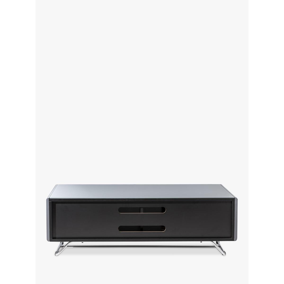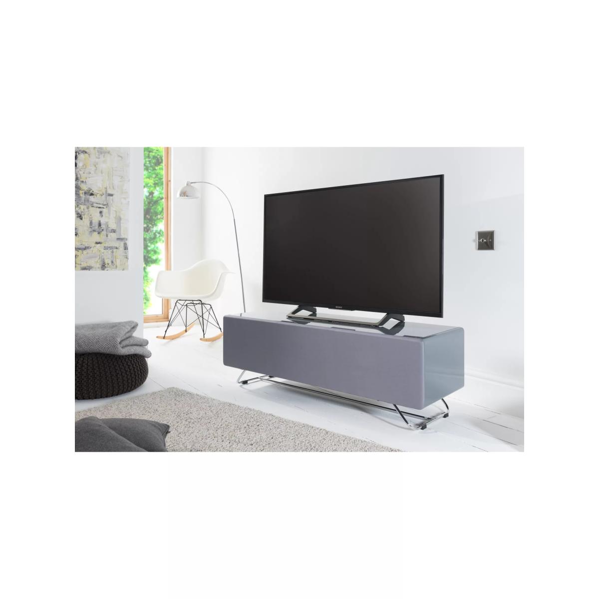 The Concept combines the signature looks of the Chromium range with modern audio practicality. It features a speaker mesh covered door for a minimalistic style without impeding sound quality, so you can seamlessly integrate your audio and AV equipment into your home. Features: Speaker mesh covered door, allowing for sound and IR remote control signals to pass unimpeded High gloss finish clad in matching glass Large soundbar shelf designed to fit most models Two large storage compartments for AV equipment Steel frame with plastic feet to protect flooring Passive ventilation on the underside, with cable management at the rear Any maximum TV size quoted is a recommendation only and the exact dimensions of the TV's pedestal/feet should be checked to ensure it fits prior to purchase.