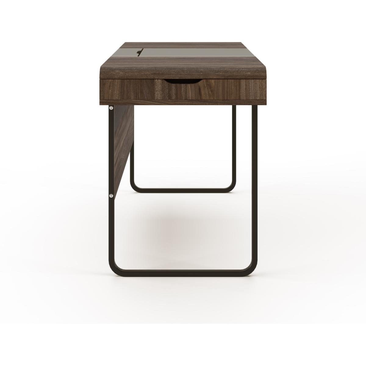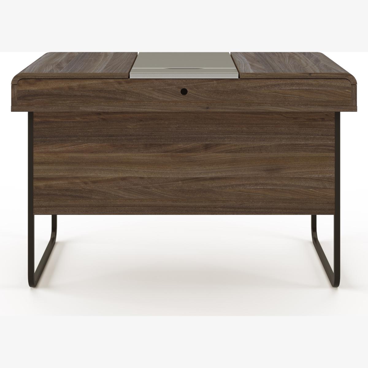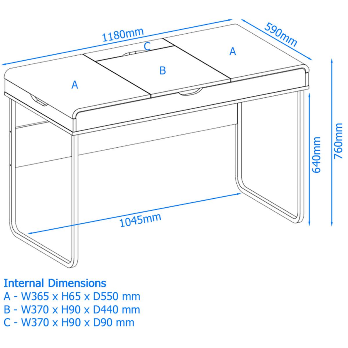 The Dorset desk is a must-have for those who hate seeing unsightly cables, with a wealth of storage options all designed to fit modern technology on a classically styled desk. It features a rear power adapter storage, two side sliding storage areas, and a large flip-up front panel, all complete with internal cable management. The Dorset comes in a beautiful wood effect finish, complemented perfectly by a grey central panel and painted metal frame.