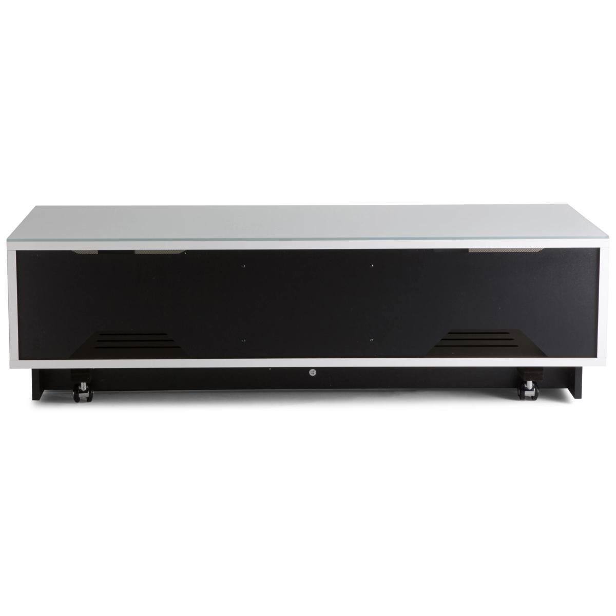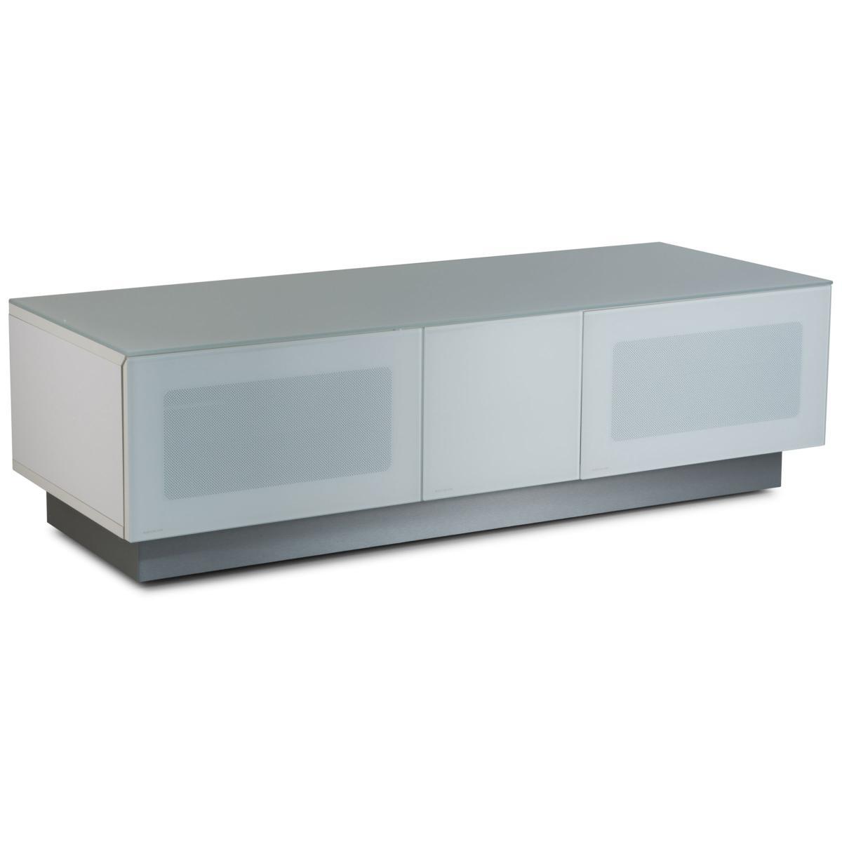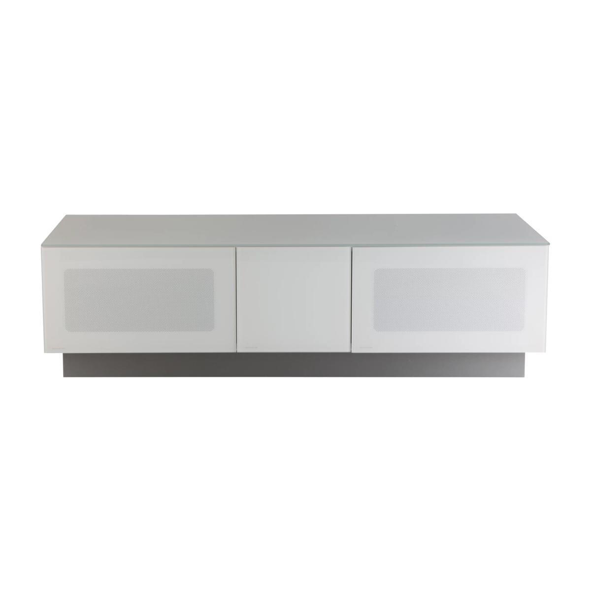 Alphason’s hyper-modern 1250mm stand is the perfect complement to your entertainment system. With its sleek monolithic shape, your TV will sit seamlessly above the feature-rich cabinet and become the centrepiece of your living room. This Element Modular design can be combined with the and other units in the range, so you can tailor-make your set-up. Keep your tech aired with the passive ventilation and control them through the infrared-friendly glass. There are two cabinets that can be opened by simply touching the glass to unhook the slick magnetic lock. Furthermore, each cabinet has a height adjustable glass shelf, doubling the space for AV units. Get your stand in just the right position with the hidden lockable castors, then run wires through the holes at the back for smooth cable management. There’s even a media drawer with a DVD and Blu-Ray holder in the middle, so you can have your collection at hand at all times. With its standout modern look, this sumptuous TV stand will be the core of your home entertainment system. Please note : Any maximum TV size quoted is a recommendation only and the exact dimensions of the TV's pedestal/feet should be checked to ensure it fits prior to purchase.