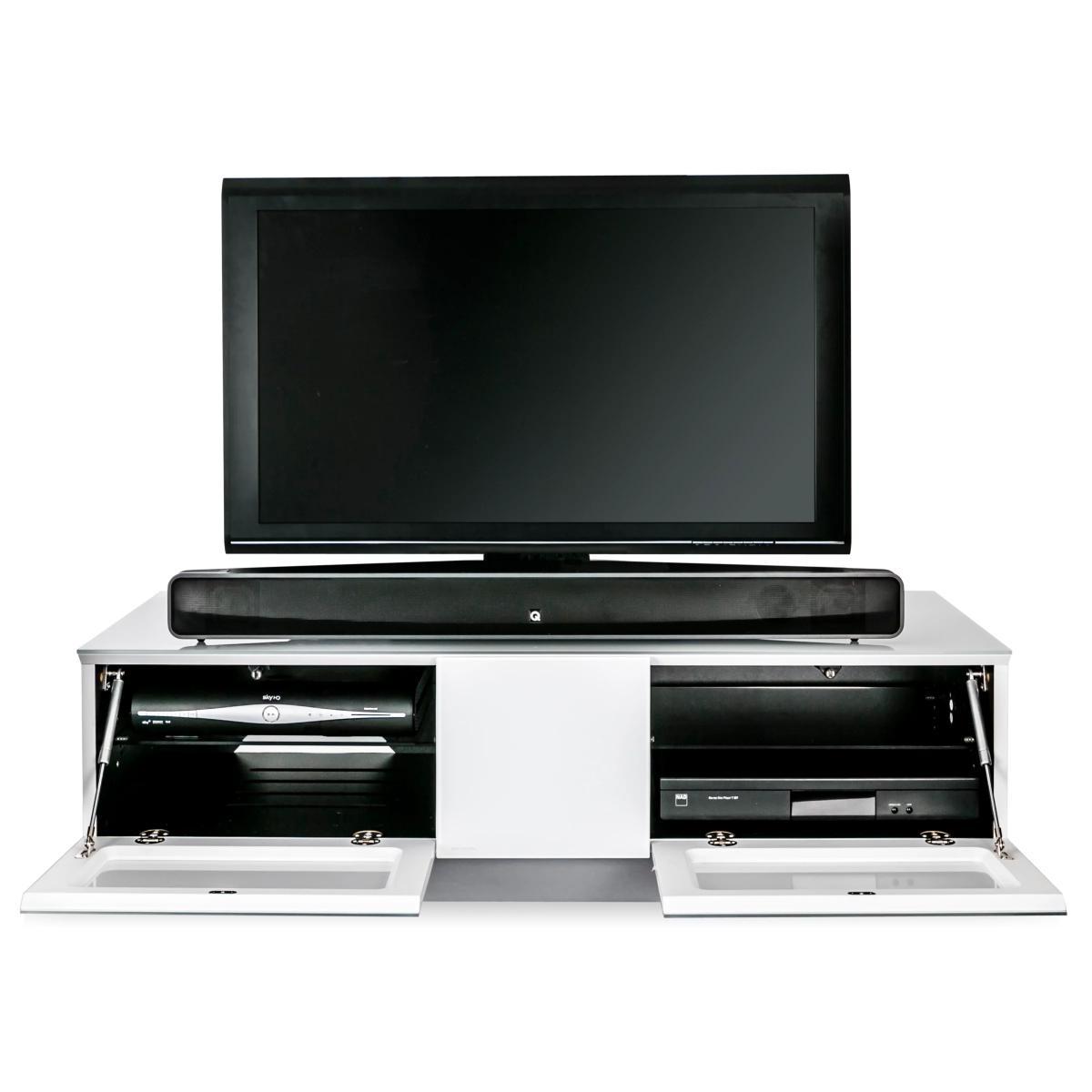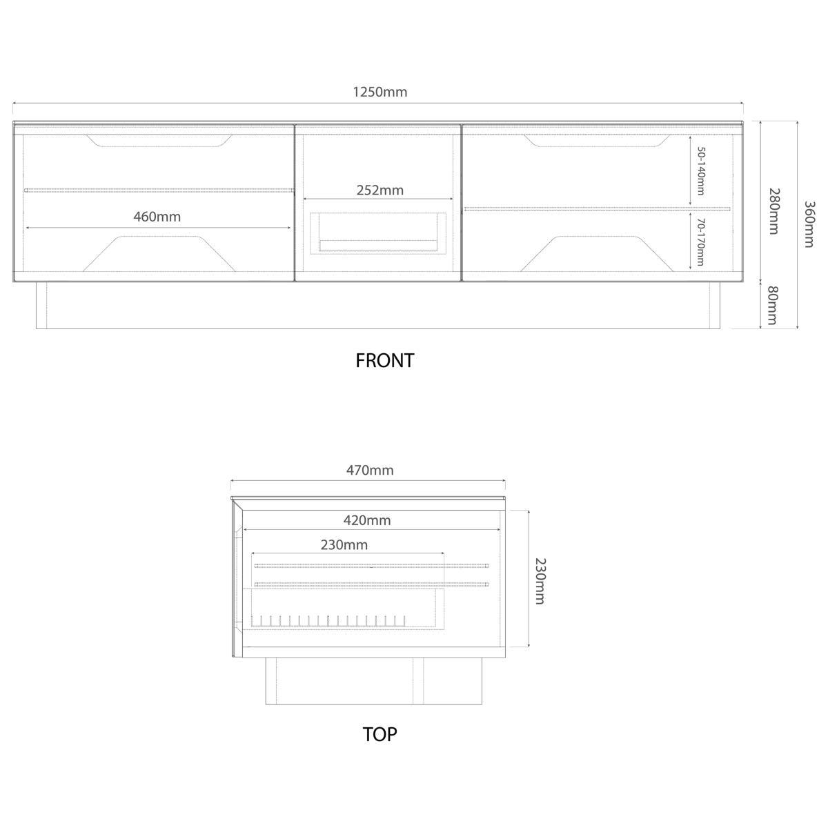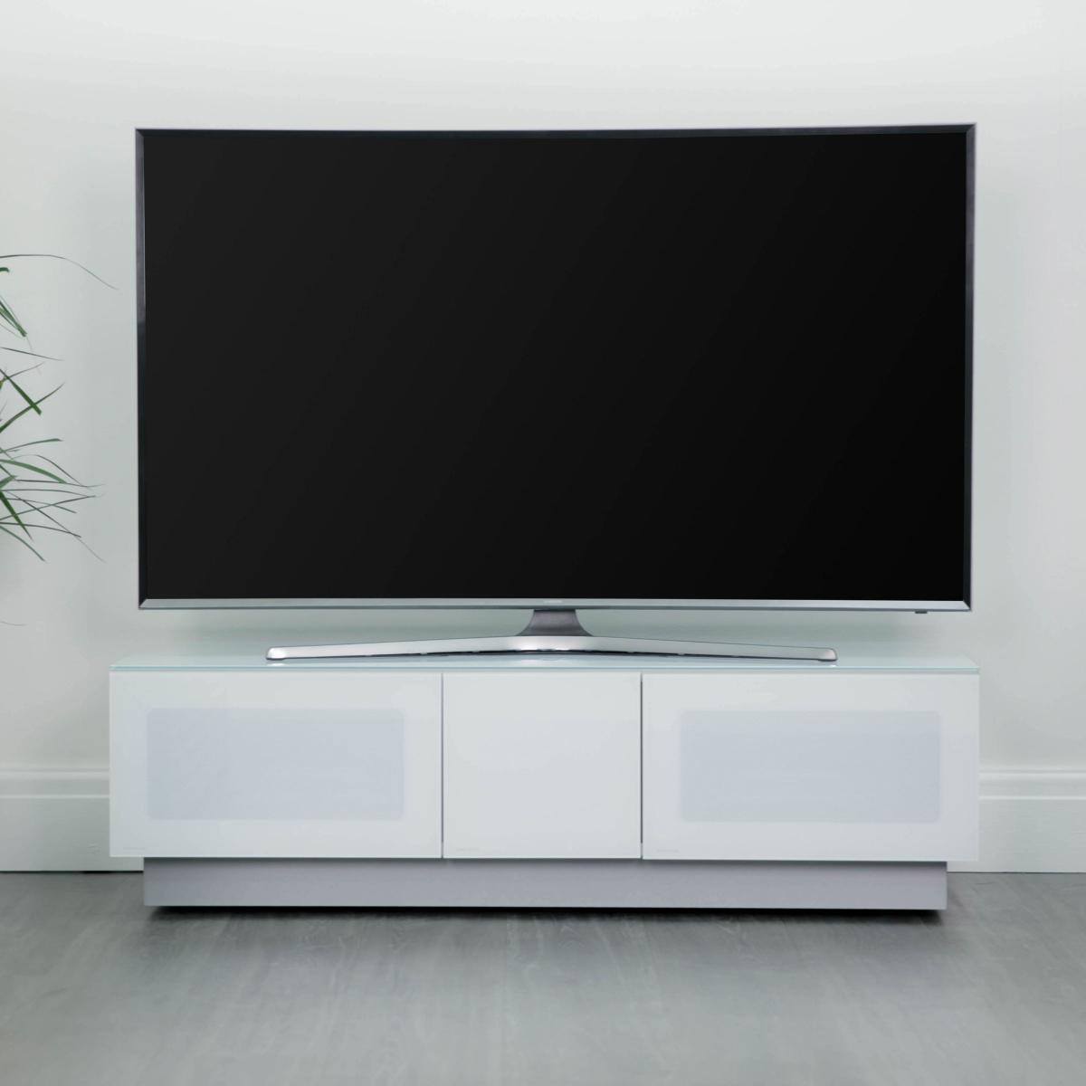 Alphason’s hyper-modern 1250mm stand is the perfect complement to your entertainment system. With its sleek monolithic shape, your TV will sit seamlessly above the feature-rich cabinet and become the centrepiece of your living room. This Element Modular design can be combined with the and other units in the range, so you can tailor-make your set-up. Keep your tech aired with the passive ventilation and control them through the infrared-friendly glass. There are two cabinets that can be opened by simply touching the glass to unhook the slick magnetic lock. Furthermore, each cabinet has a height adjustable glass shelf, doubling the space for AV units. Get your stand in just the right position with the hidden lockable castors, then run wires through the holes at the back for smooth cable management. There’s even a media drawer with a DVD and Blu-Ray holder in the middle, so you can have your collection at hand at all times. With its standout modern look, this sumptuous TV stand will be the core of your home entertainment system. Please note : Any maximum TV size quoted is a recommendation only and the exact dimensions of the TV's pedestal/feet should be checked to ensure it fits prior to purchase.