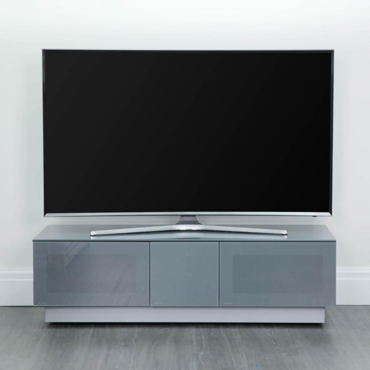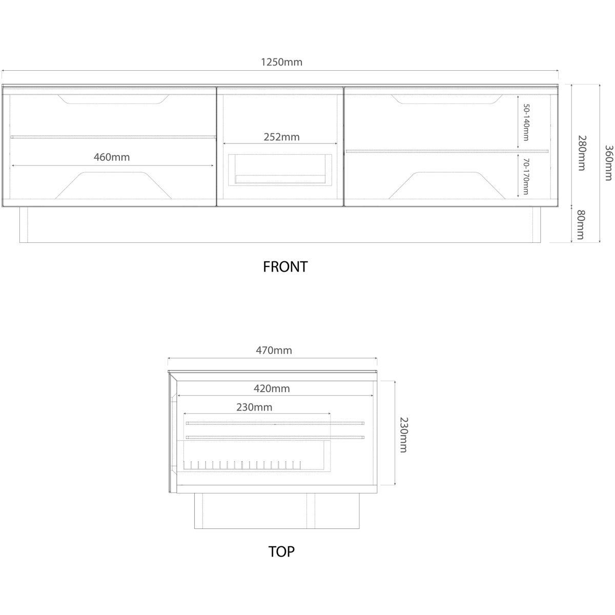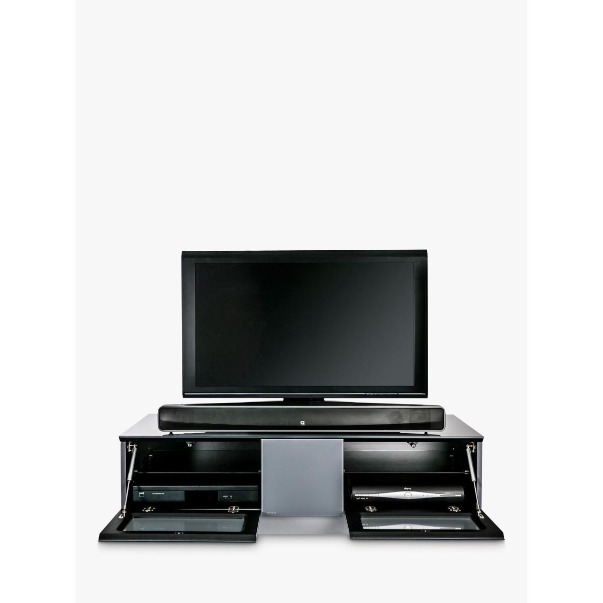 Alphason’s hyper-modern 1250mm stand is the perfect complement to your entertainment system. With its sleek monolithic shape, your TV will sit seamlessly above the feature-rich cabinet and become the centrepiece of your living room. This Element Modular design can be combined with the and other units in the range, so you can tailor-make your set-up. Keep your tech aired with the passive ventilation and control them through the infrared-friendly glass. There are two cabinets that can be opened by simply touching the glass to unhook the slick magnetic lock. Furthermore, each cabinet has a height adjustable glass shelf, doubling the space for AV units. Get your stand in just the right position with the hidden lockable castors, then run wires through the holes at the back for smooth cable management. There’s even a media drawer with a DVD and Blu-Ray holder in the middle, so you can have your collection at hand at all times. With its standout modern look, this sumptuous TV stand will be the core of your home entertainment system. Please note : Any maximum TV size quoted is a recommendation only and the exact dimensions of the TV's pedestal/feet should be checked to ensure it fits prior to purchase.