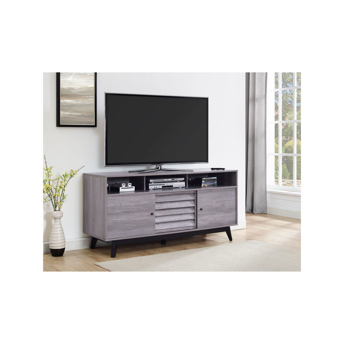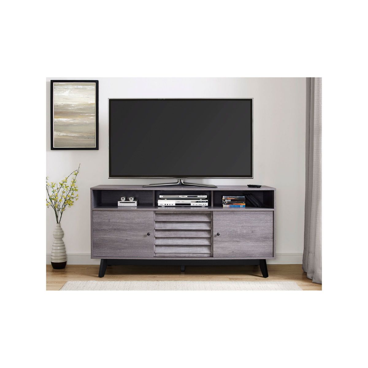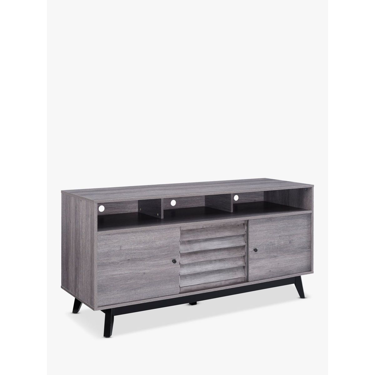 The Mansfield TV stand completes the living room with a mid-century modern look. It features two sleek sliding doors and one louvered sliding door on a second track, allowing it to slide behind the solid doors. Behind each door are adjustable shelves to comfortably house all your entertainment components and accessories. Three upper open compartments with cable management features house your disc players, TV receiver and games consoles, placing them in easy reach. The beautiful Mansfield stand accommodates flat panel TVs up to 60” wide, with a maximum weight of 43kg. Features: 3 open front storage spaces with rear cable management, ideal for AV equipment and games consoles 3 lower storage compartments, covered with sliding doors 2 solid sliding doors with 1 louvered door on second track 360° all round finish Any maximum TV size quoted is a recommendation only and the exact dimensions of the TV's pedestal/feet should be checked to ensure it fits prior to purchase.