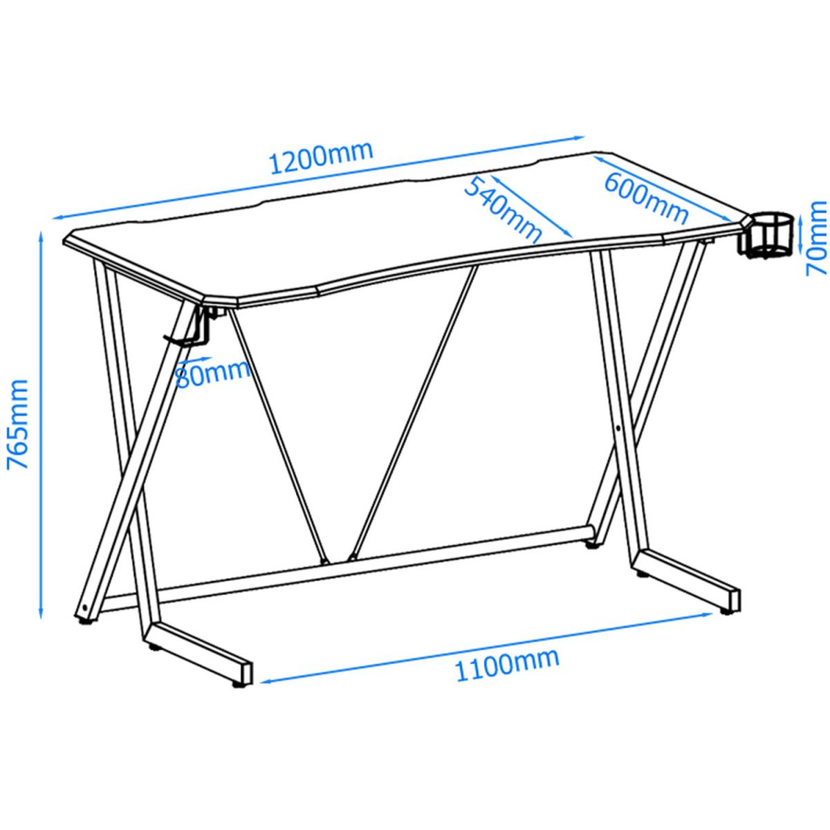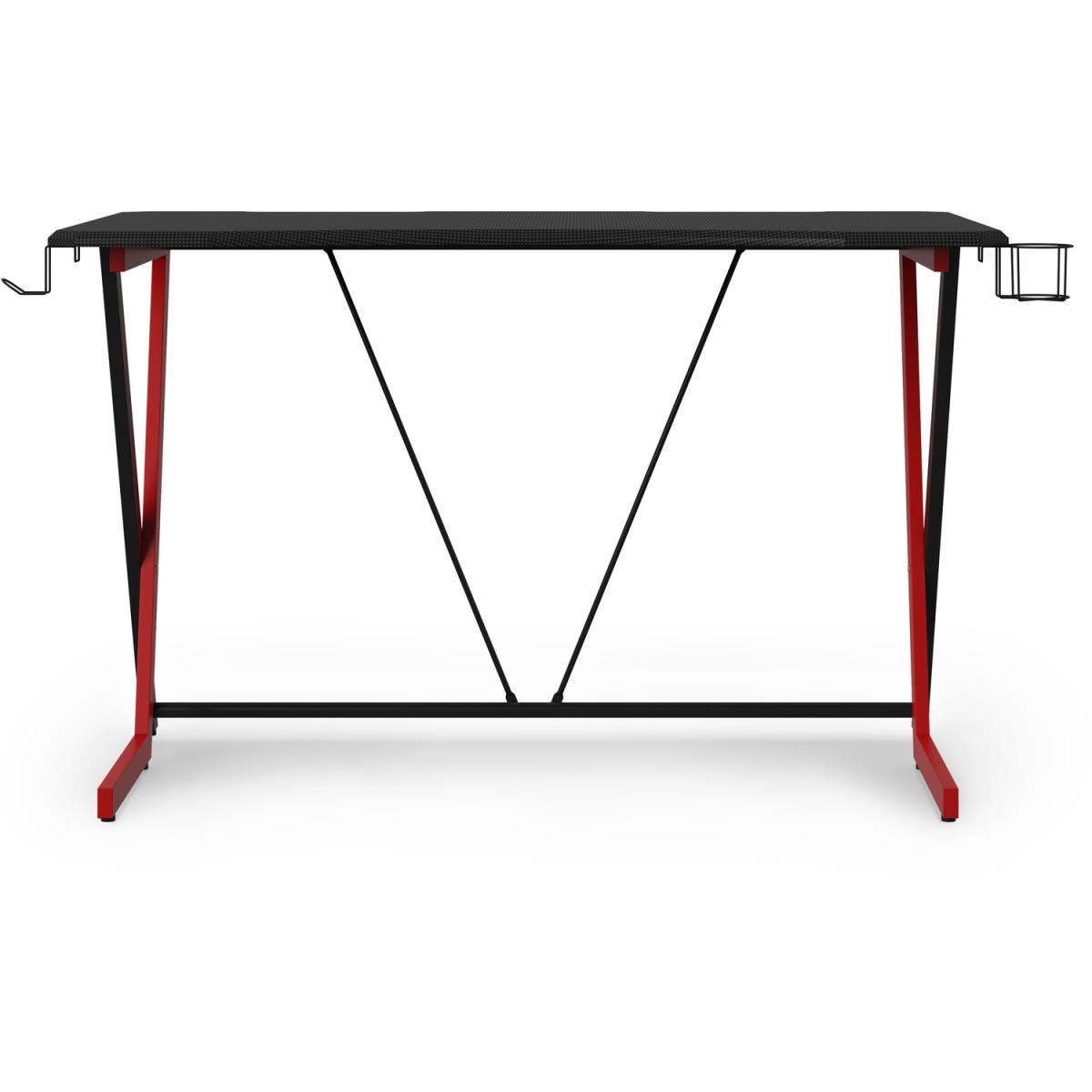 Stay ahead of the game with the Phantom Desk. The angled steel frame in stylishly contrasting black and red gives an open and airy feel, and supports a carbon fibre effect worktop large and sturdy enough to hold multiple monitors and equipment. The Phantom includes an optional headphone hanger and drinks holder.