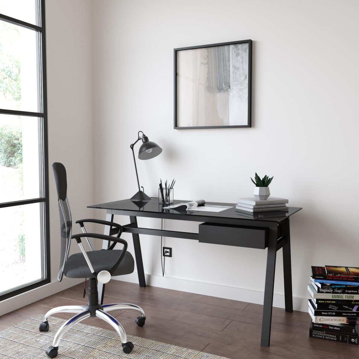 Simple but stylish, the Richmond desk features a painted frame with matching coloured glass. The open, airy look perfectly fits all decor, and the under-desk drawer adds extra storage. Available in black, white or grey.