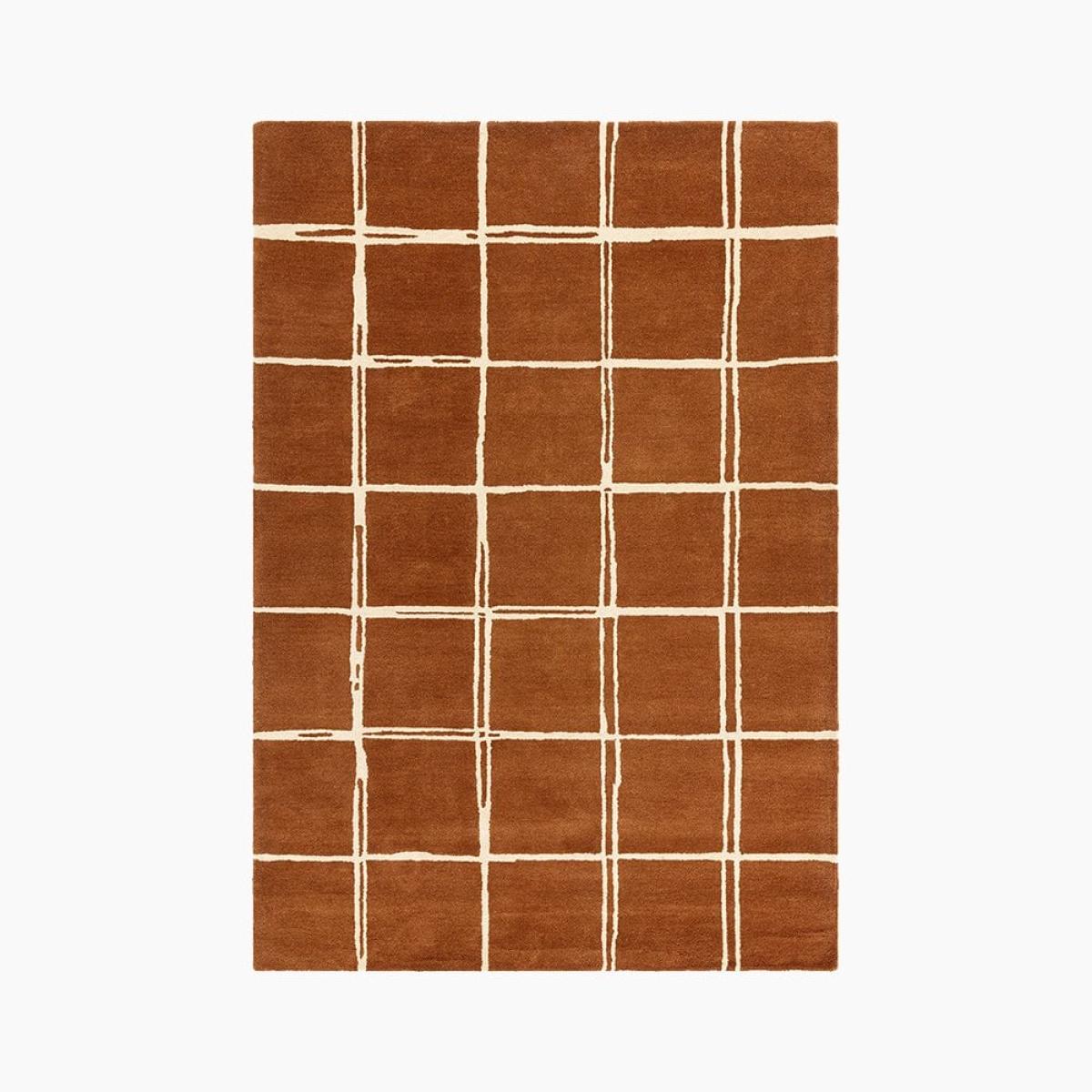 Say hello to modernist accents with the Alresford Grid Rug in Burnt Orange. Hand-tufted and made of pure wool, this rug enriches your space with a cosy hygge feel while the free-flowing checked pattern adds a touch of elegance.