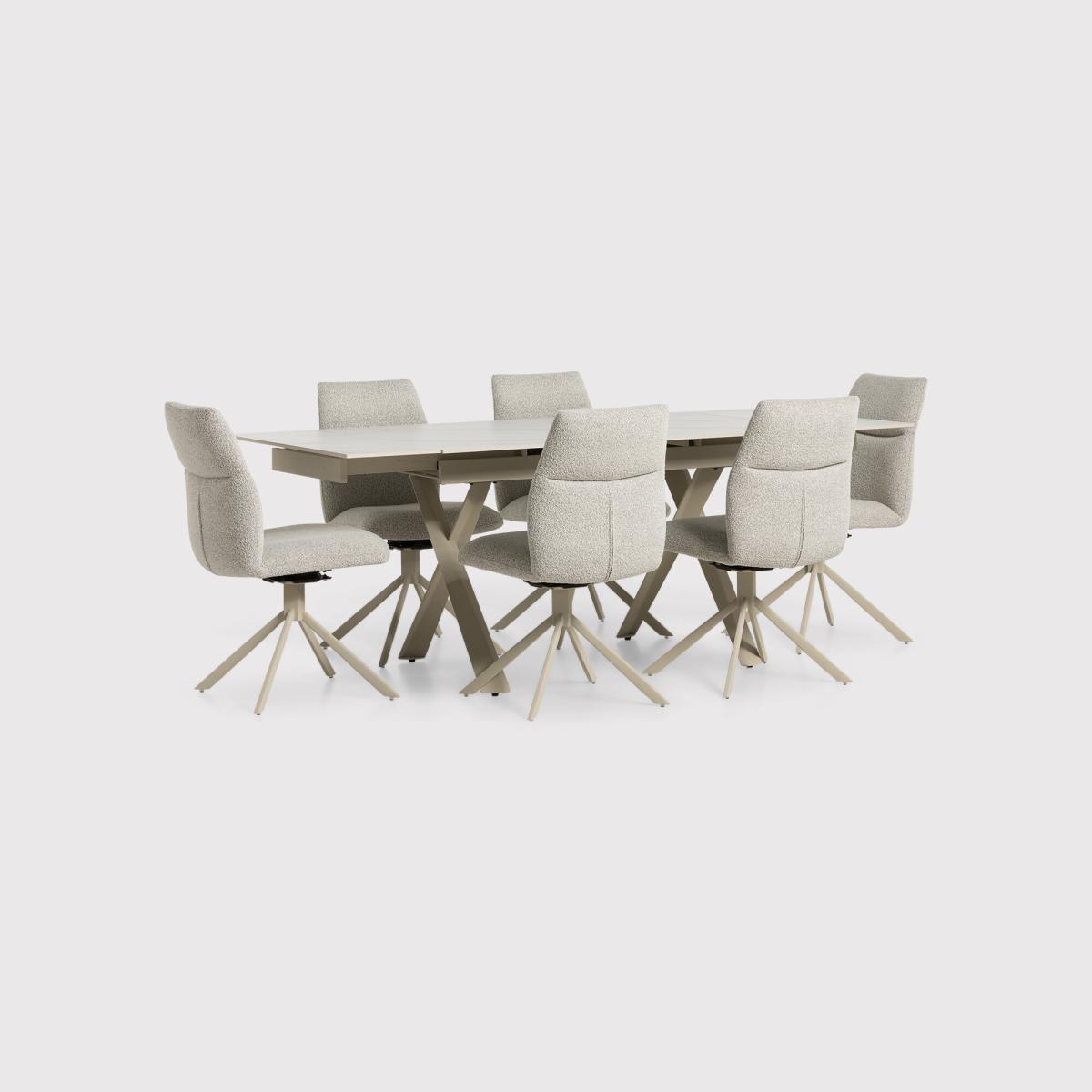 Altadena Extension Table+6 x Altadena Swivel Armchair, Neutral Ceramic | Barker & Stonehouse