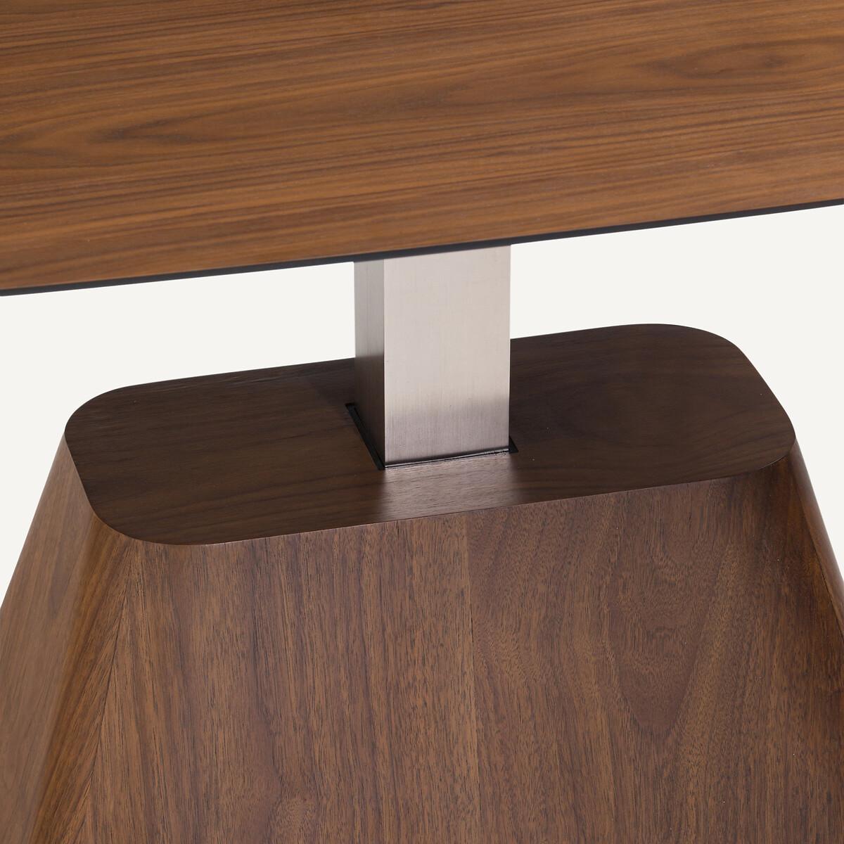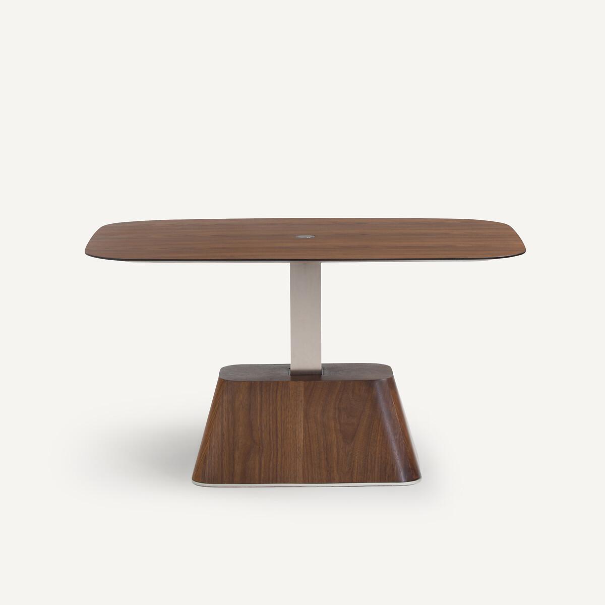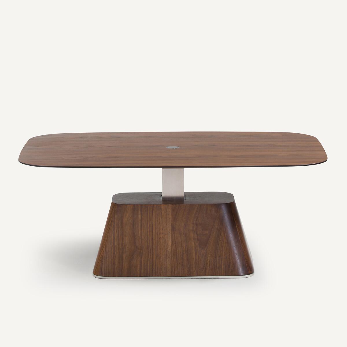 A coffee or dining table, from a sofa or an armchair... Alteza is ideal for optimising small spaces. By pressing the central button, it goes up and down from 44cm to 65cm high. Designed for 4 guests, its walnut veneer top with an organic profile rests on a solid walnut base, in which slides a mat with a satin nickel finish. An exclusive design by AMPM.Product Details • Rectangular top in FSC®-certified walnut-veneered MDF with chamfered edges, nitrocellulose varnish finish. • Central base in metal with satin nickel finish, base in solid walnut, nitrocellulose varnish finish. FSC® certified wood • Seats 4.Care Advice • We recommend the use of coasters and placemats, and to immediately wipe up any spilled liquid. Quality Info • Wood is a living material. The differences in shades, grains and knots reinforce its character and authenticity.. Over time it may crack slightly. It is a process caused by variations in temperature and humidity. Dimensions • Length: 110cm • Width: 75cm • Height: 44/65cmDelivery:. This product is sold ready to assemble. It will be delivered to your door. Note! Please check that all access points are large enough to accommodate your delivery (doors, stairs, lifts). • WOOD FROM SUSTAINABLY MANAGED FORESTS. FSC® certified wood comes from forests that are environmentally, socially and economically well managed. Dimensions and weight of parcel • 2 parcels • L69 x D45 x H49cm, 47kg • L120 x D84 x H80cm, 15kg